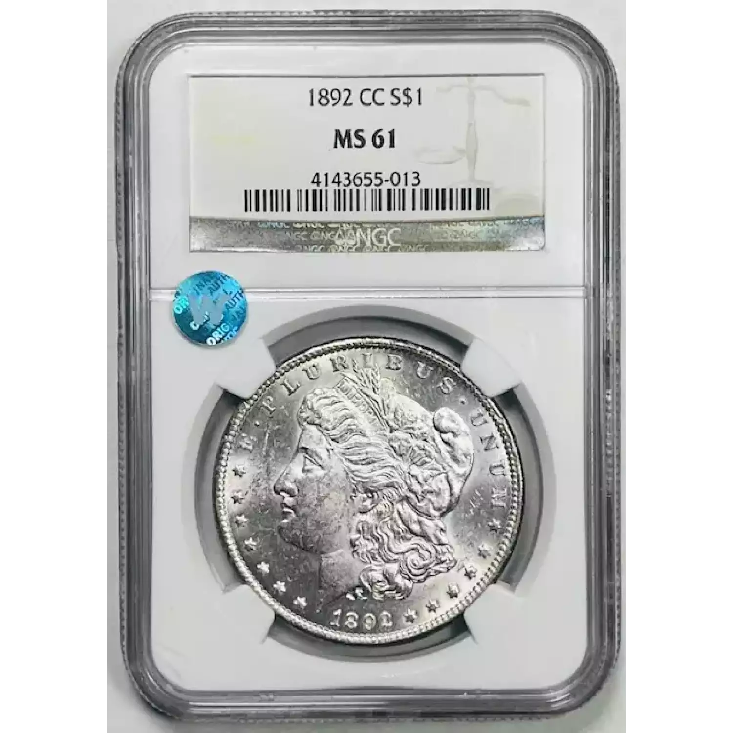 1892-CC Morgan Silver Dollar NGC MS-61 Sight White