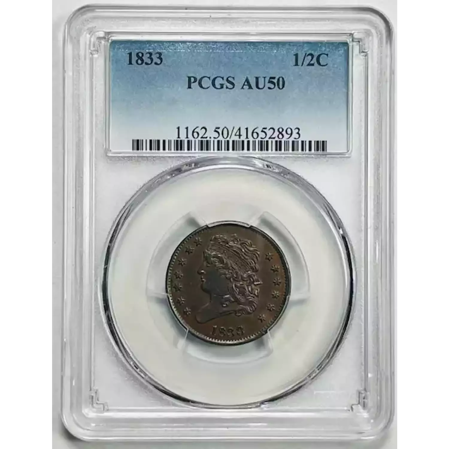 1833 Liberty Cap Half Cents, Head Facing Left PCGS AU-50
