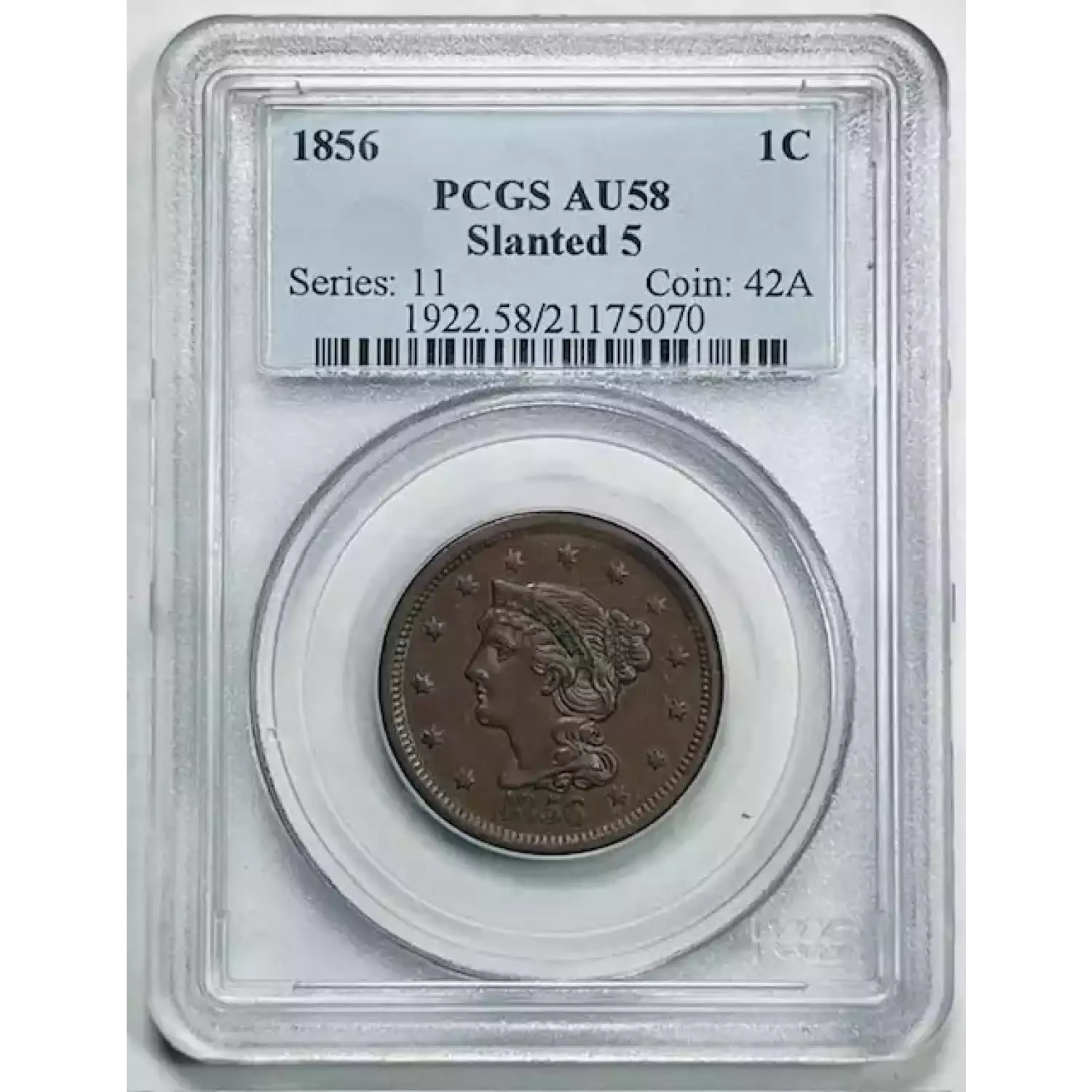 1856 Braided Hair Cent PCGS AU-58 Slanted 5