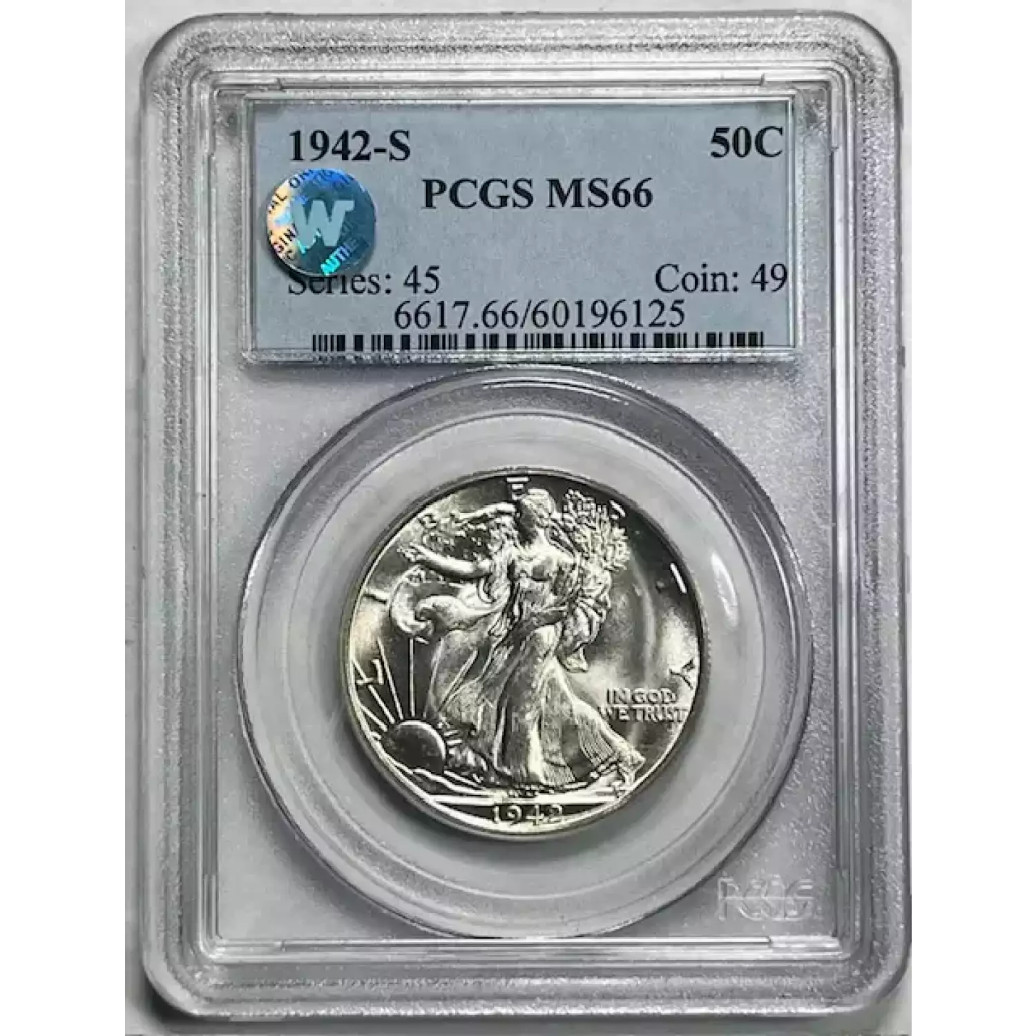 1942-S Walking Liberty Half Dollar PCGS MS-66 Sight White