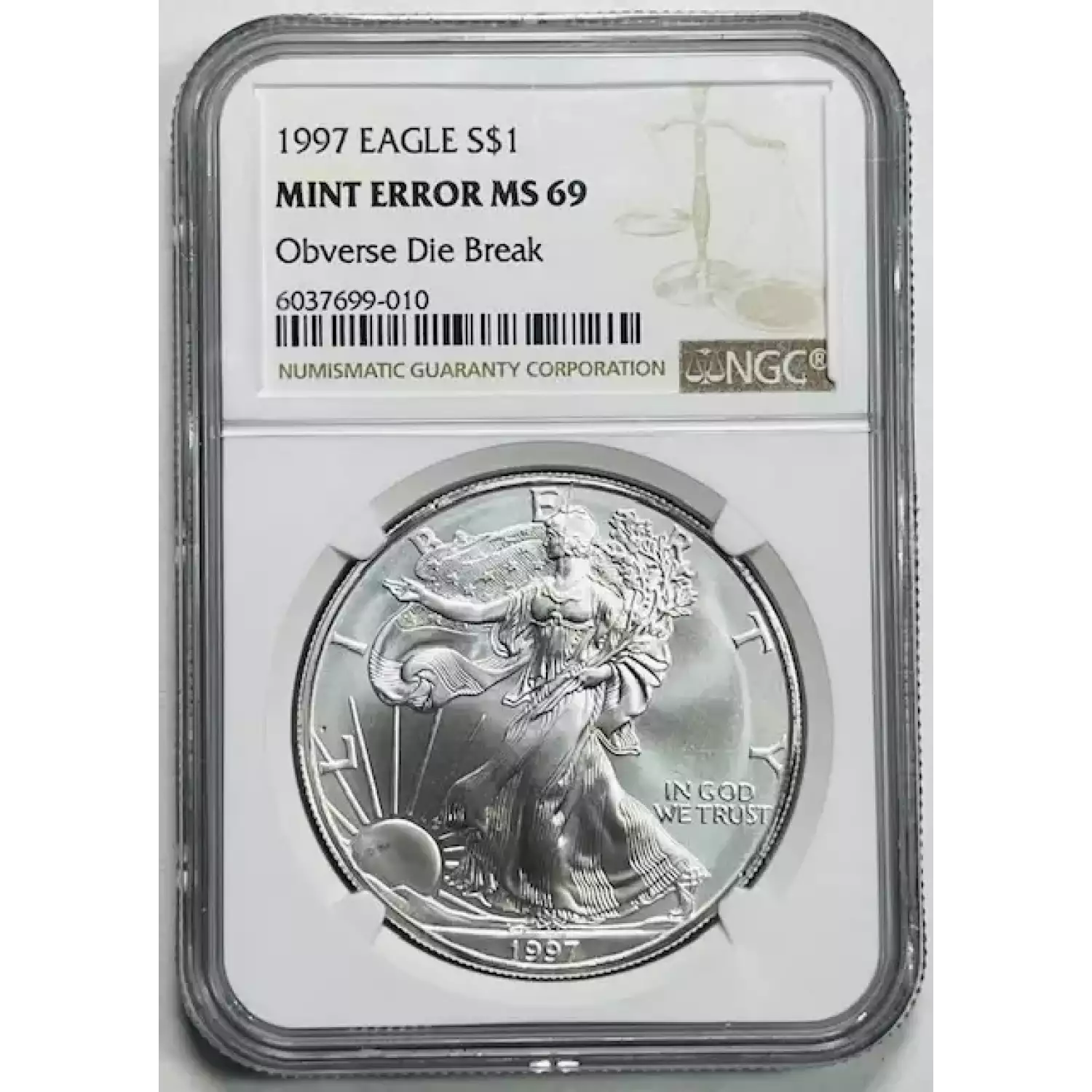 1997 Silver Eagles NGC MS-69 Mint Error "Crack Head"