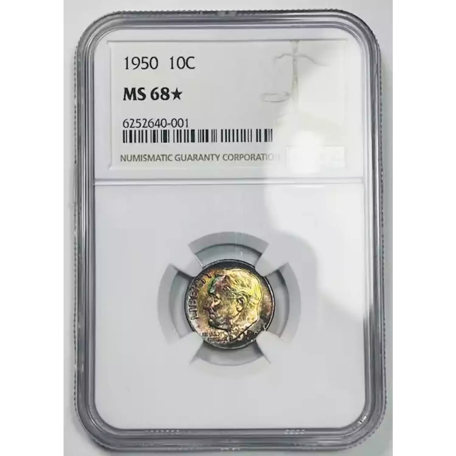 1950 Dimes Roosevelt NGC MS-68* Pretty Toning!