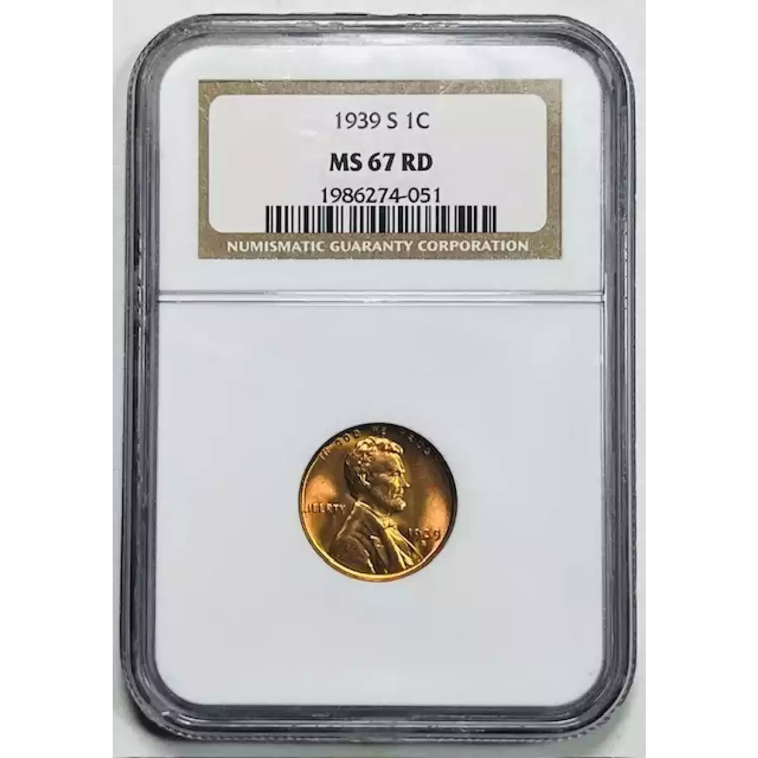 1939-S Small Cents Lincoln, Wheat Ears Reverse NGC MS-67 RD