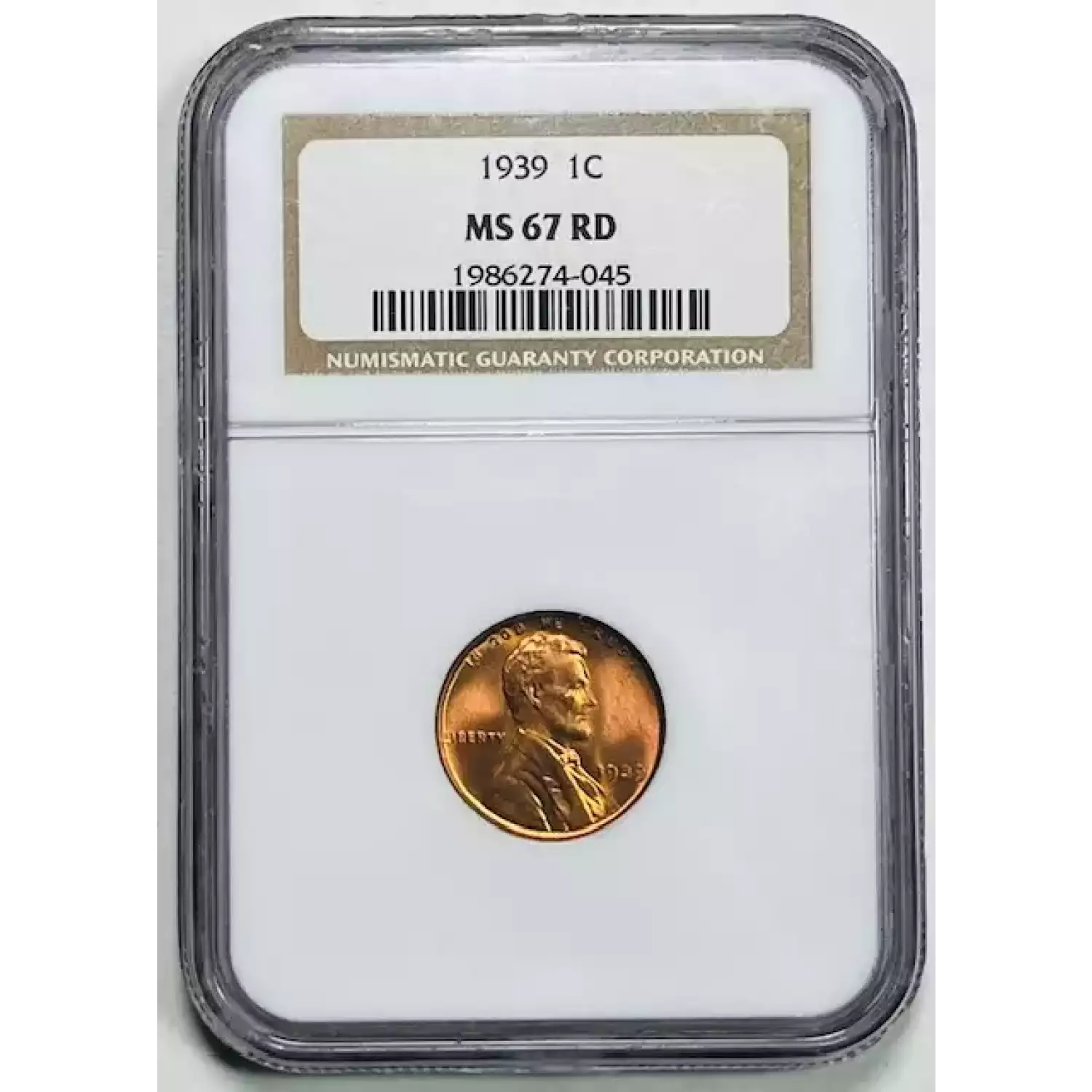 1939 Small Cents Lincoln, Wheat Ears Reverse NGC MS-67 RD