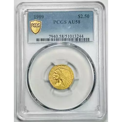 1909 Gold Quarter Eagles $2 1/2 Indian Head PCGS AU-58