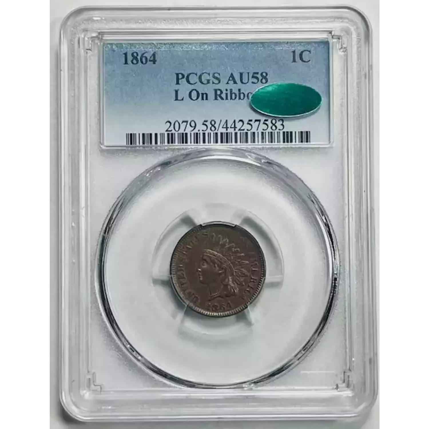 1864 Small Cents Indian Head PCGS AU-58 BN L on Ribbon CAC