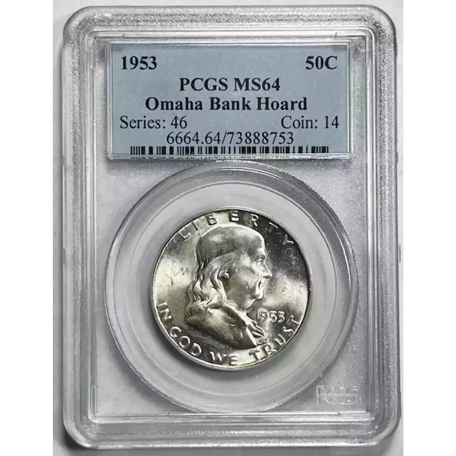 1953 Franklin Half Dollar PCGS MS-64 Omaha Bank Hoard