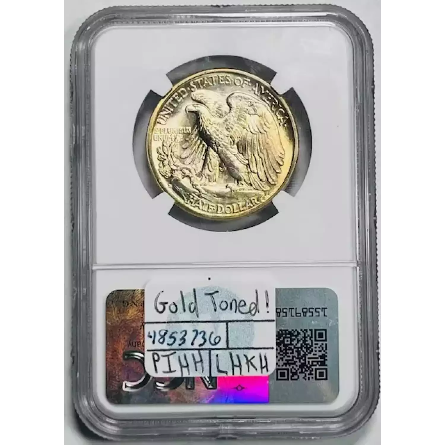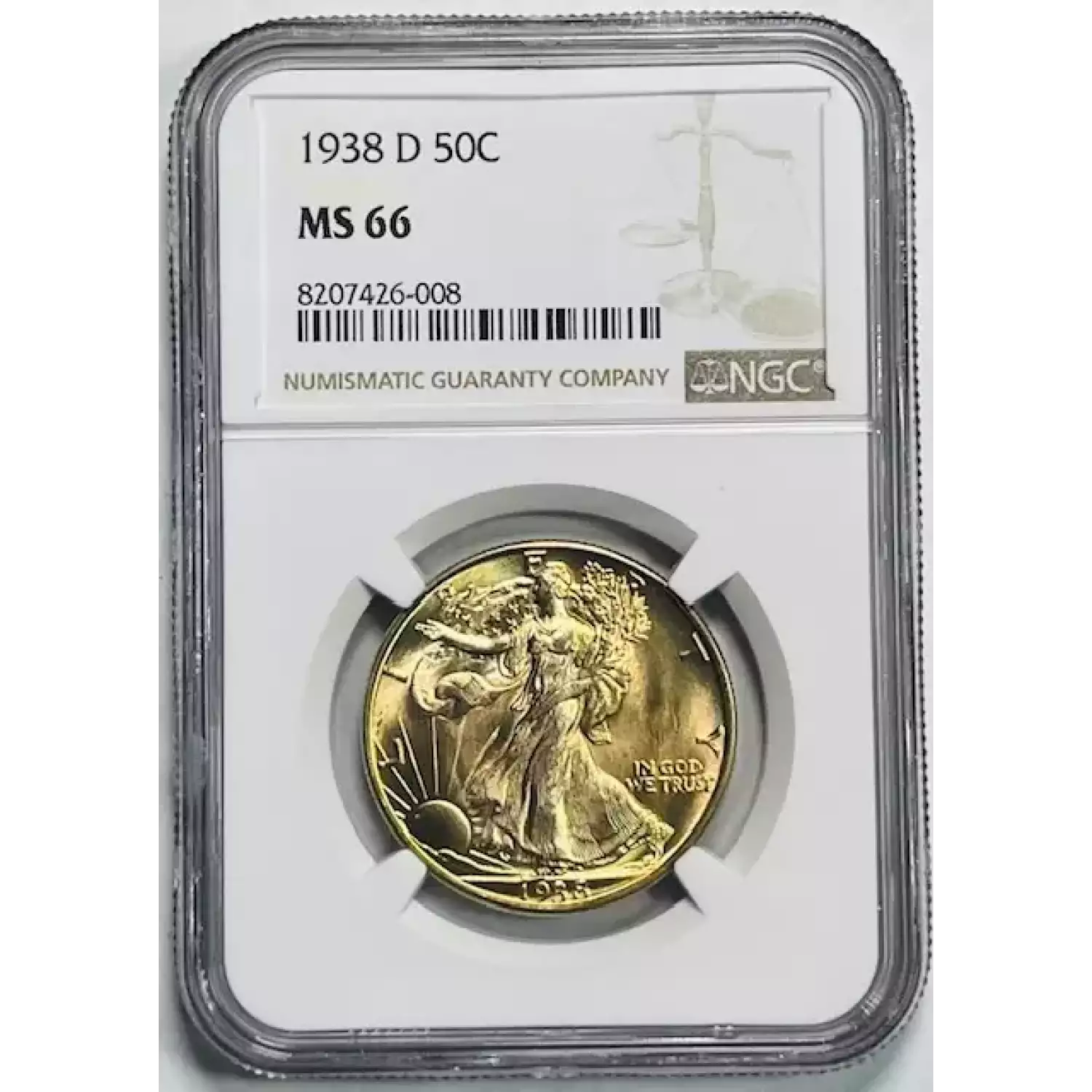 1938-D Walking Liberty Half Dollar NGC MS-66 Gold Toned!