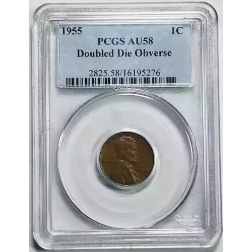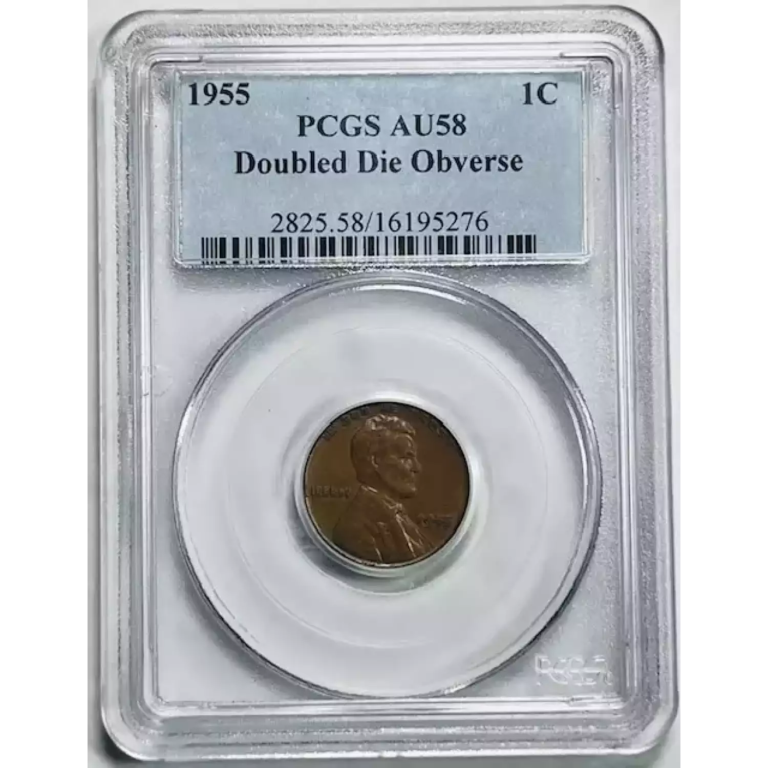 1955 Small Cents Lincoln, Wheat Ears Reverse PCGS AU-58 BN Doubled Die Obverse
