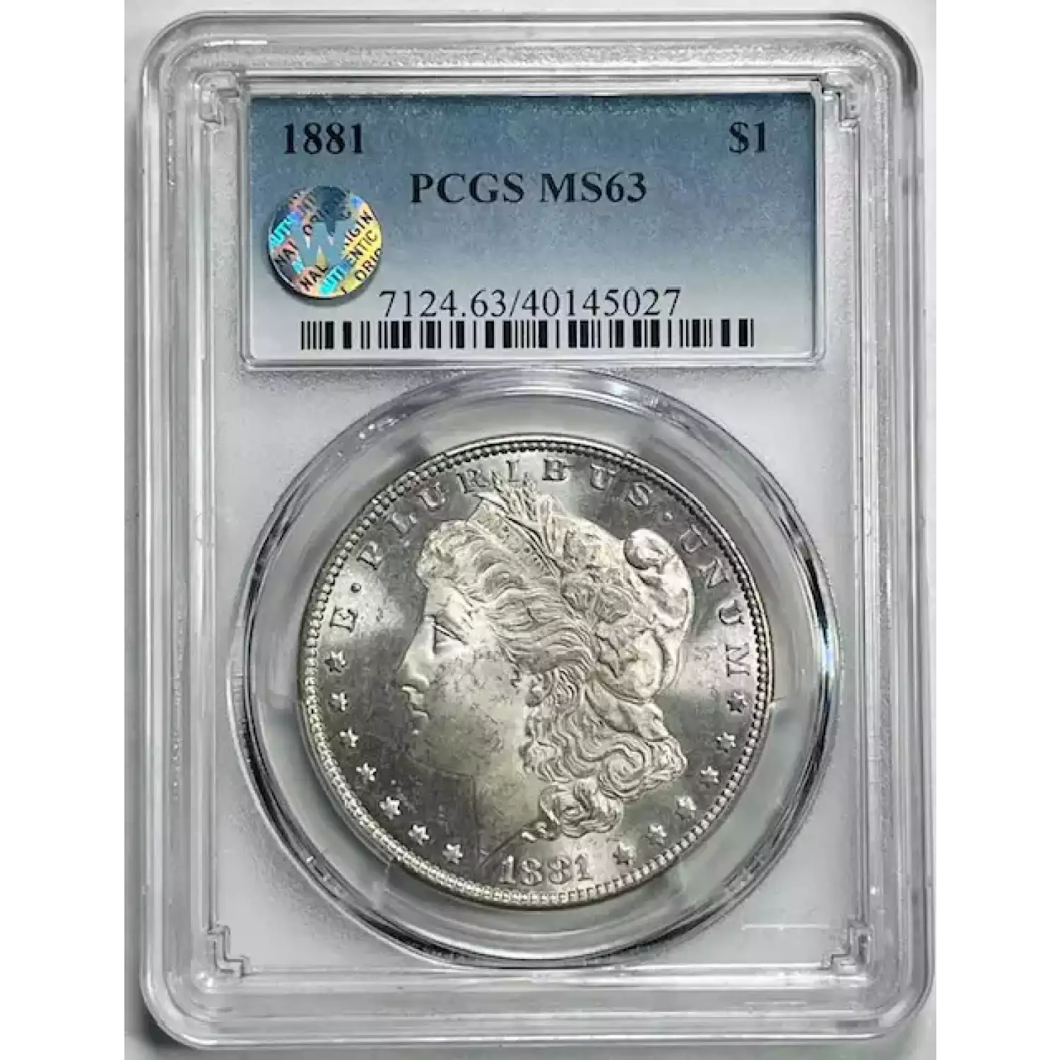 1881 Morgan Silver Dollar PCGS MS-63 Sight White