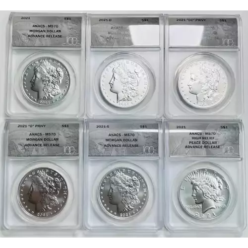 2021 Morgan Silver Dollar ANACS MS-70 6 COIN SET!!