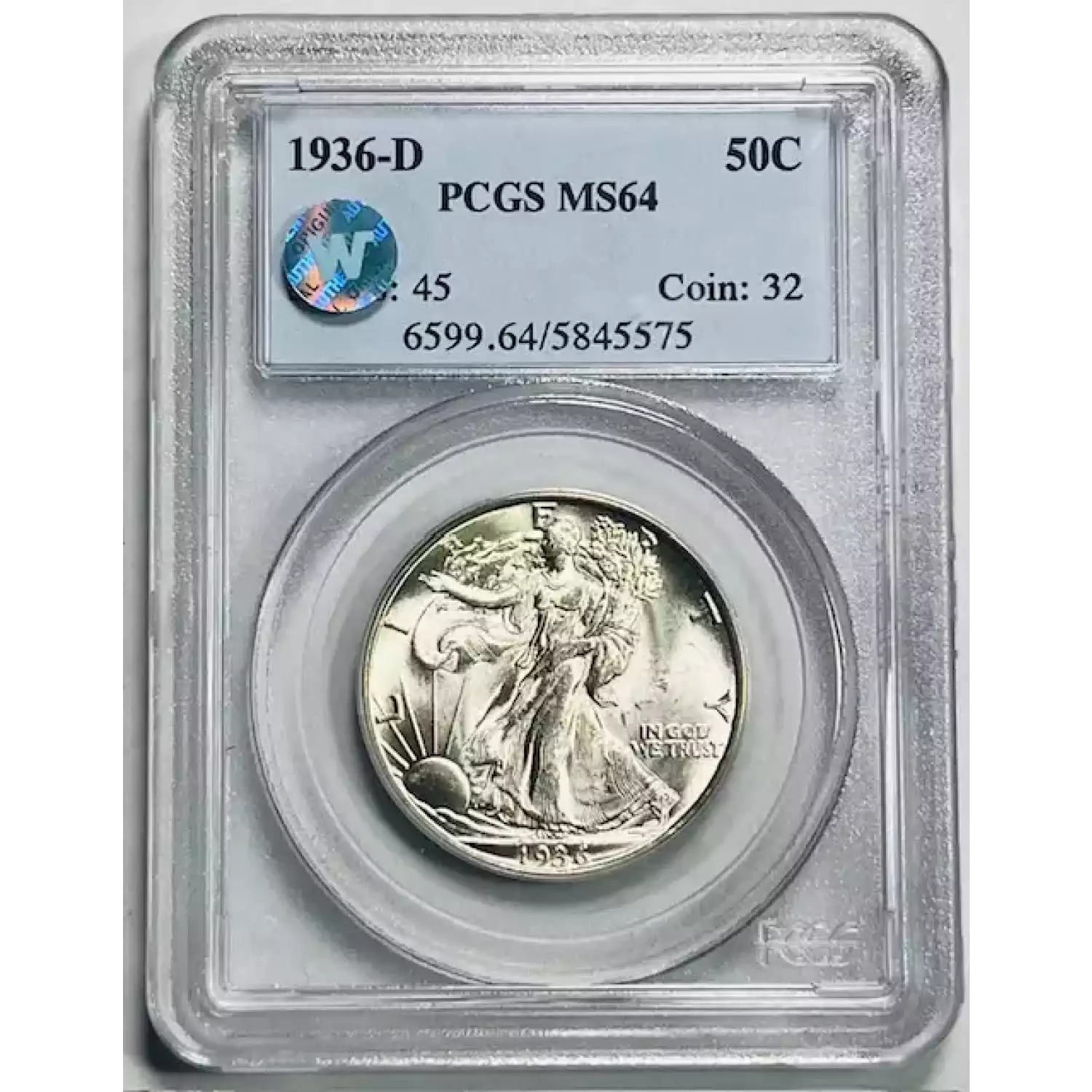 1936-D Walking Liberty Half Dollar PCGS MS-64 Sight White