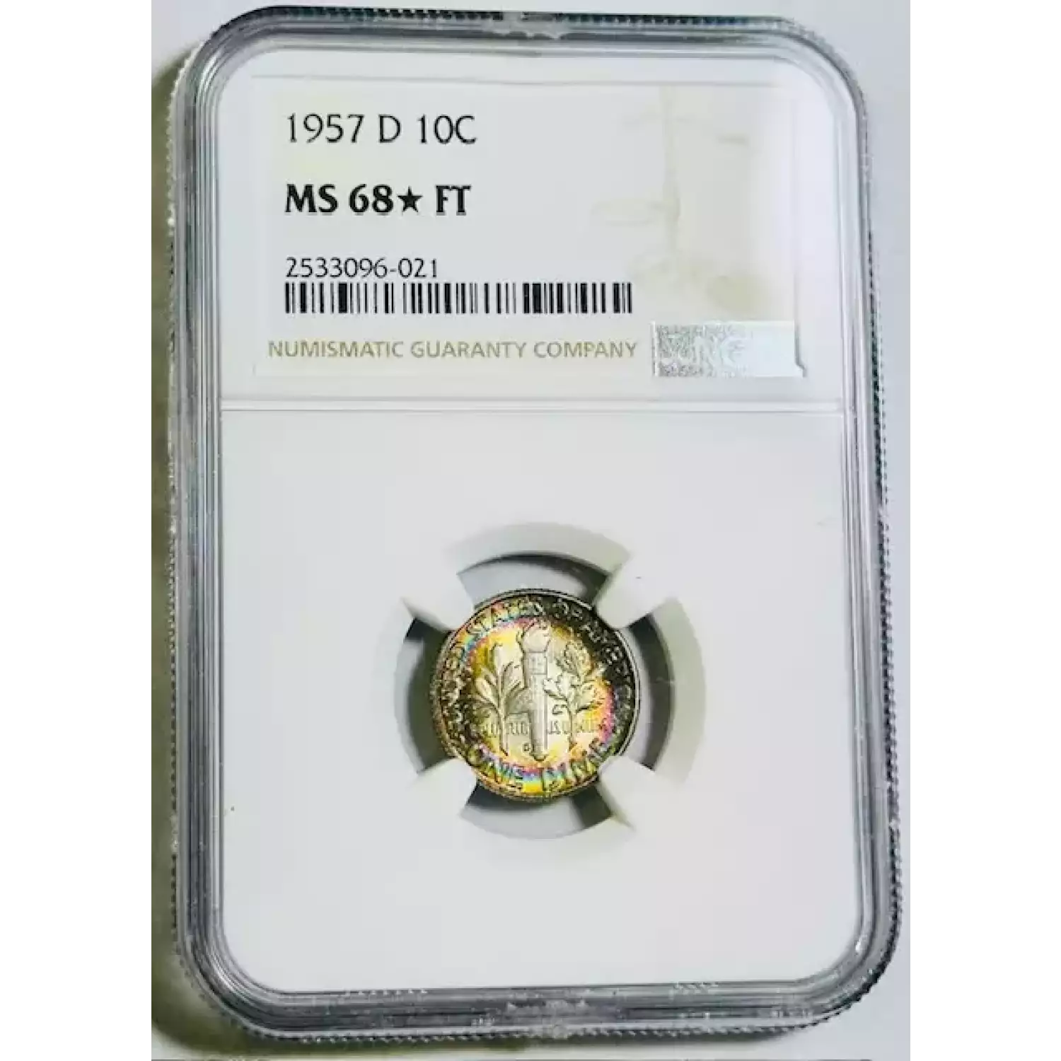 1957-D Dimes Roosevelt NGC MS-68* FT Amazing Color!