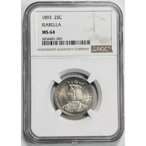 1893 Classic Commemorative World's Columbian Exposition, Isabella Quarter NGC MS-64 ISABELLA