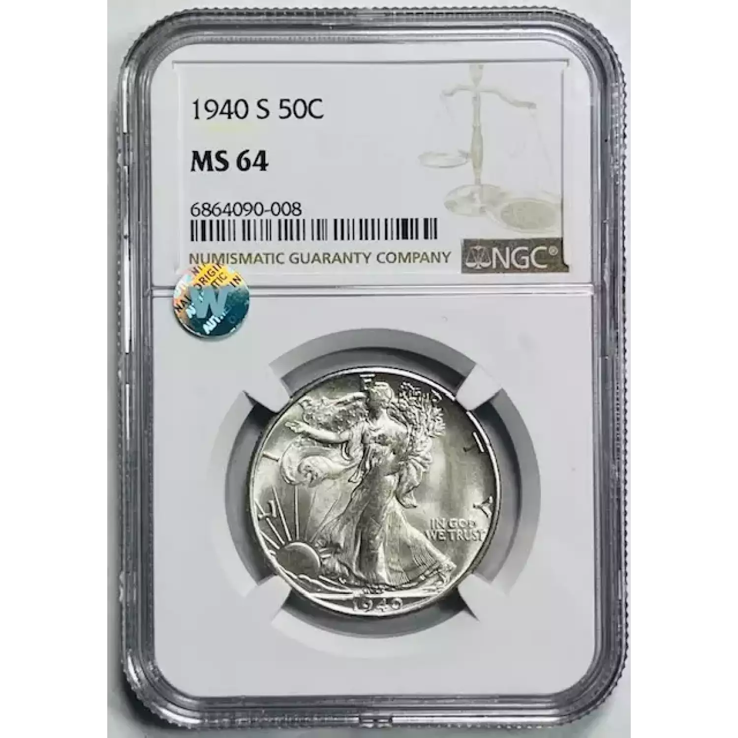 1940-S Walking Liberty Half Dollar NGC MS-64 Sight White
