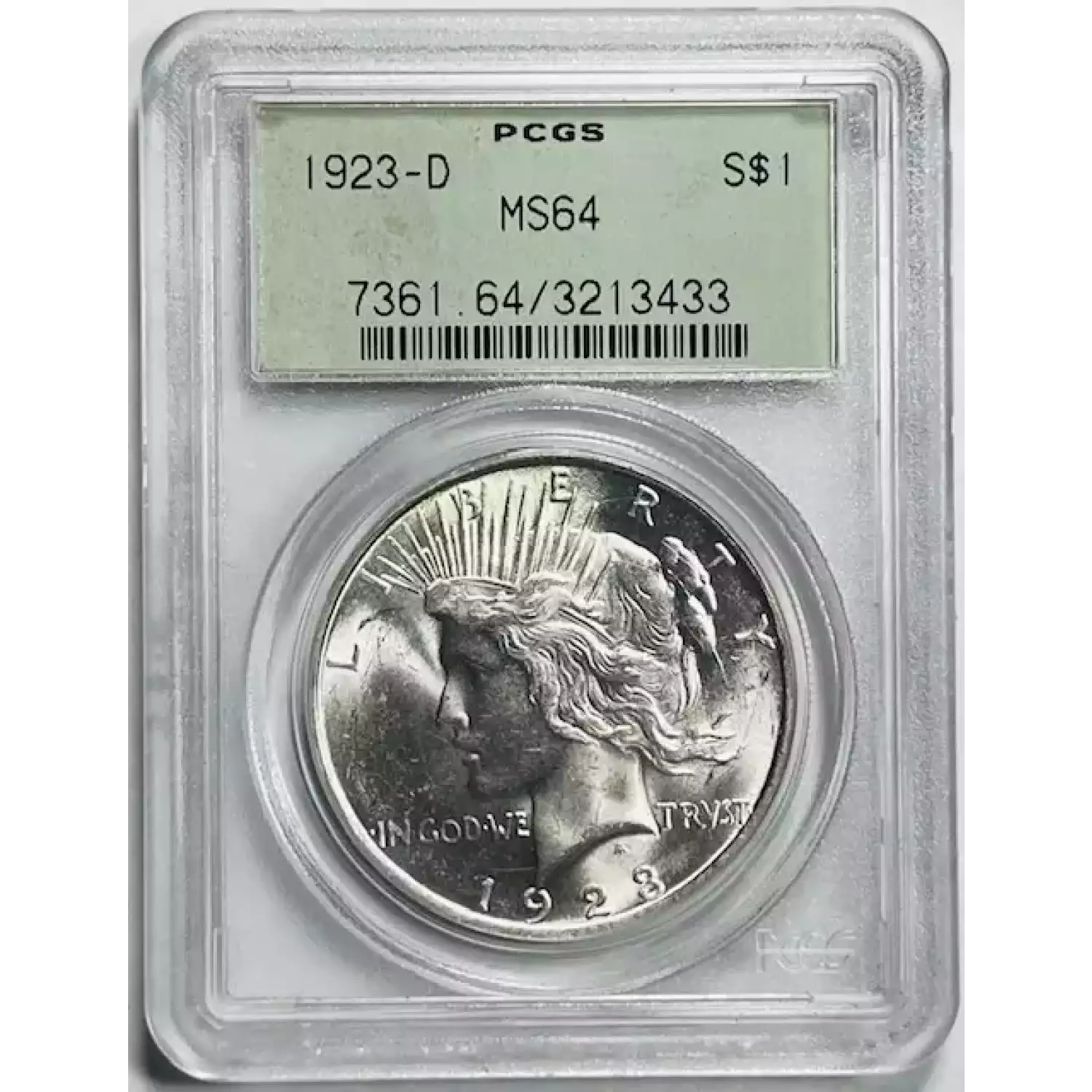 1923-D Peace Dollar PCGS MS-64 PQ! OGH