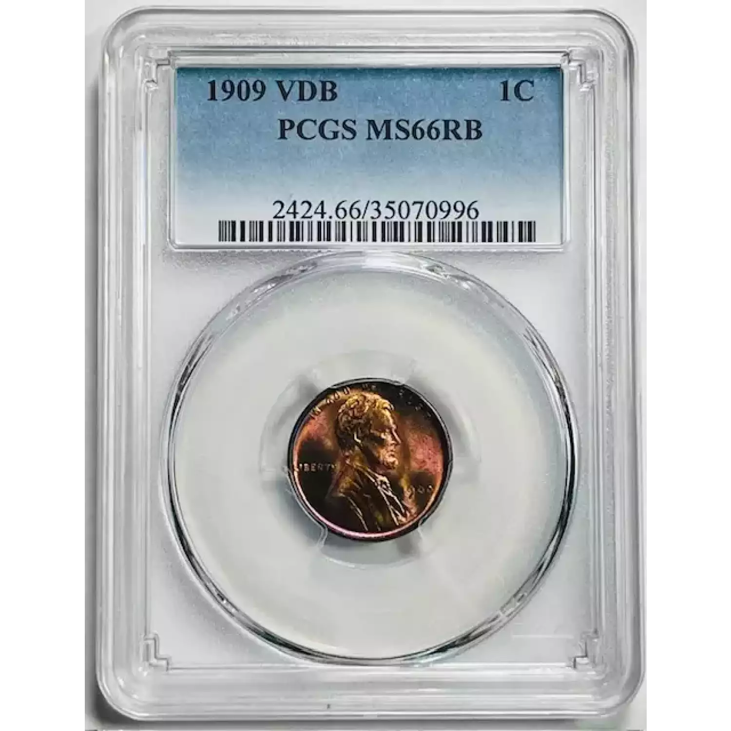 1909 Small Cents Lincoln, Wheat Ears Reverse PCGS MS-66 RB Pretty Purple!
