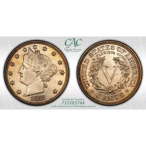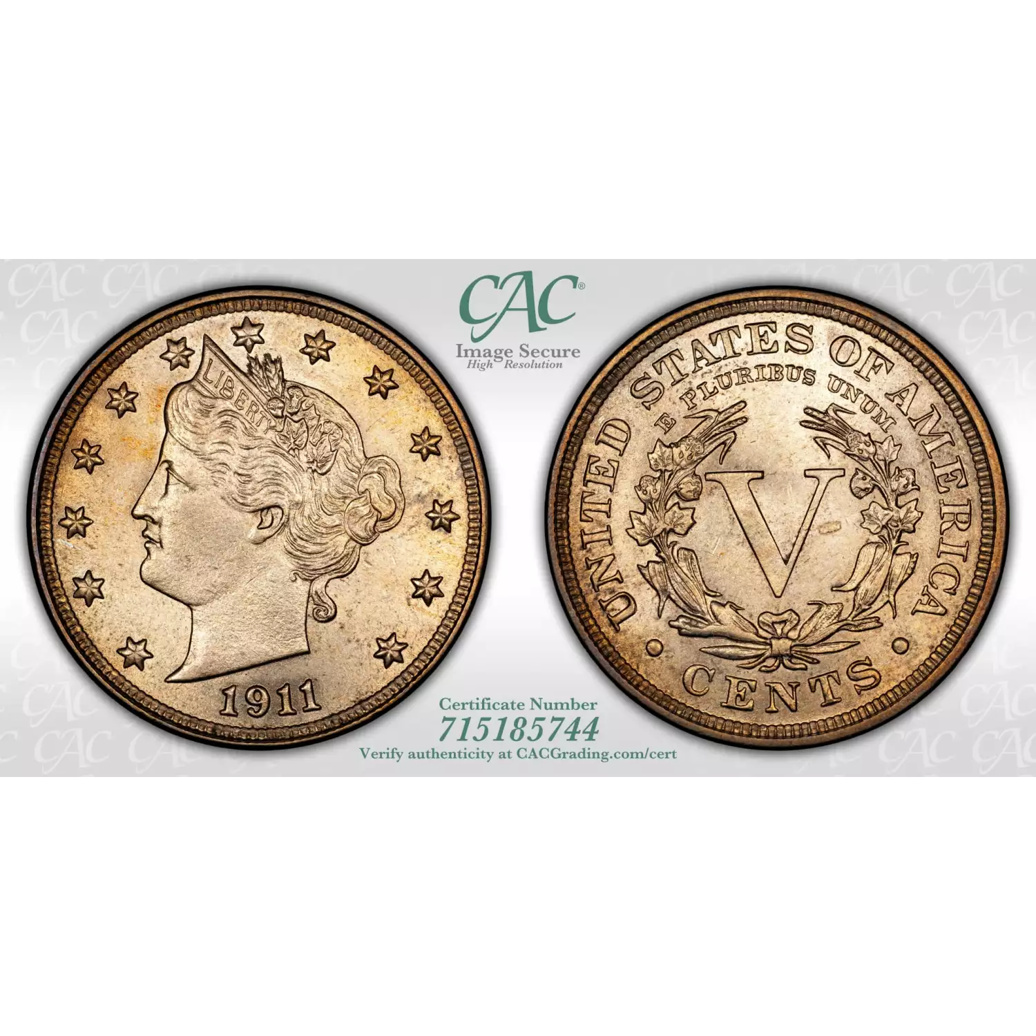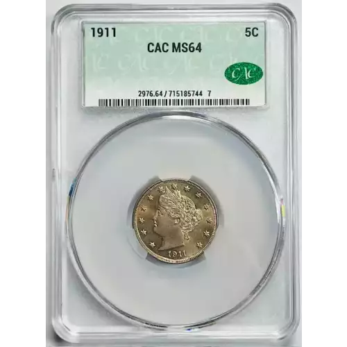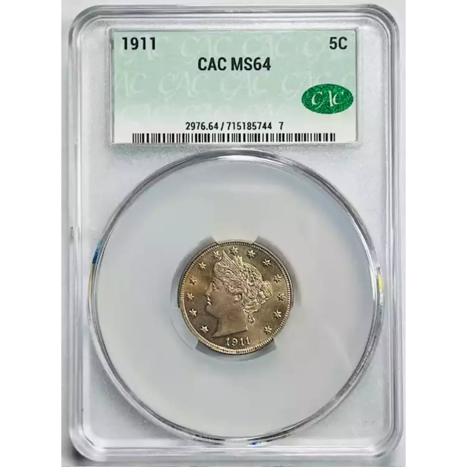 1911 Liberty Head Nickel CACG MS 64 CAC