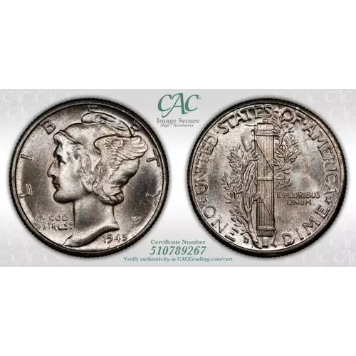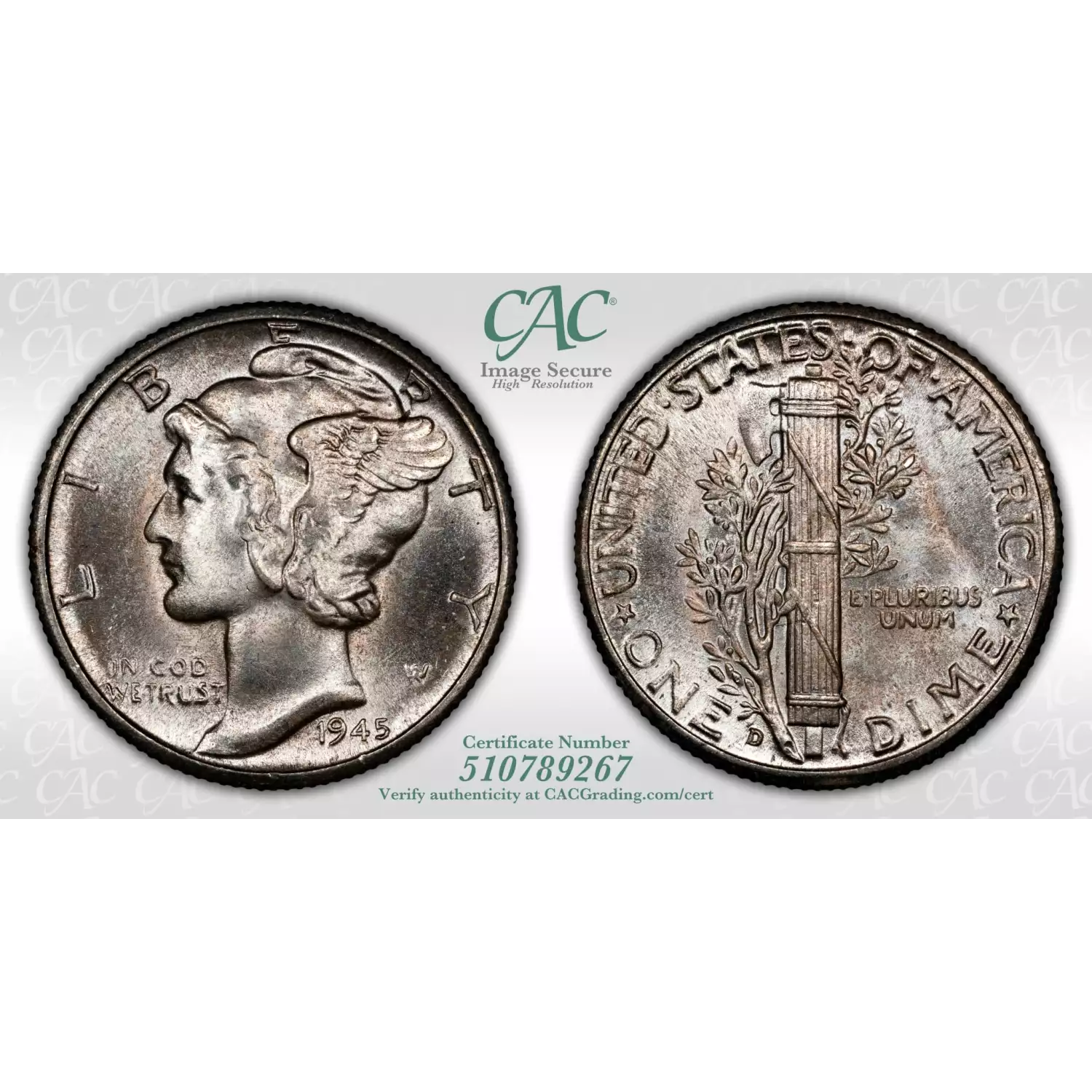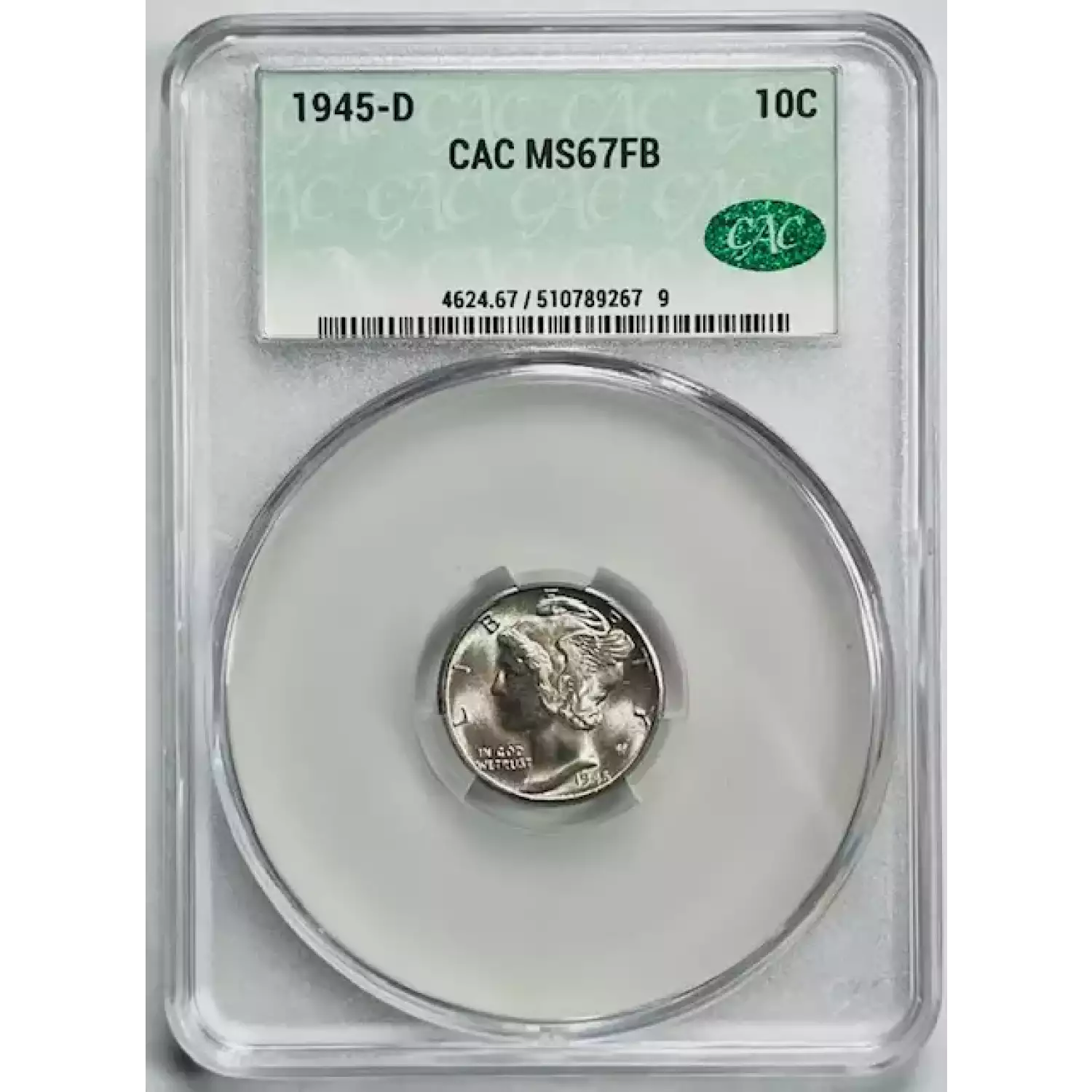 1945-D Mercury Dime CACG MS 67 FB CAC