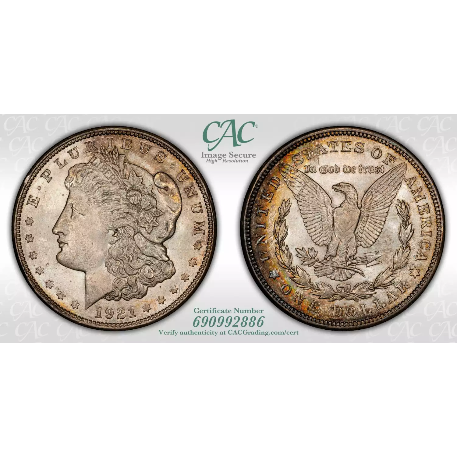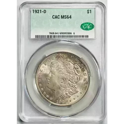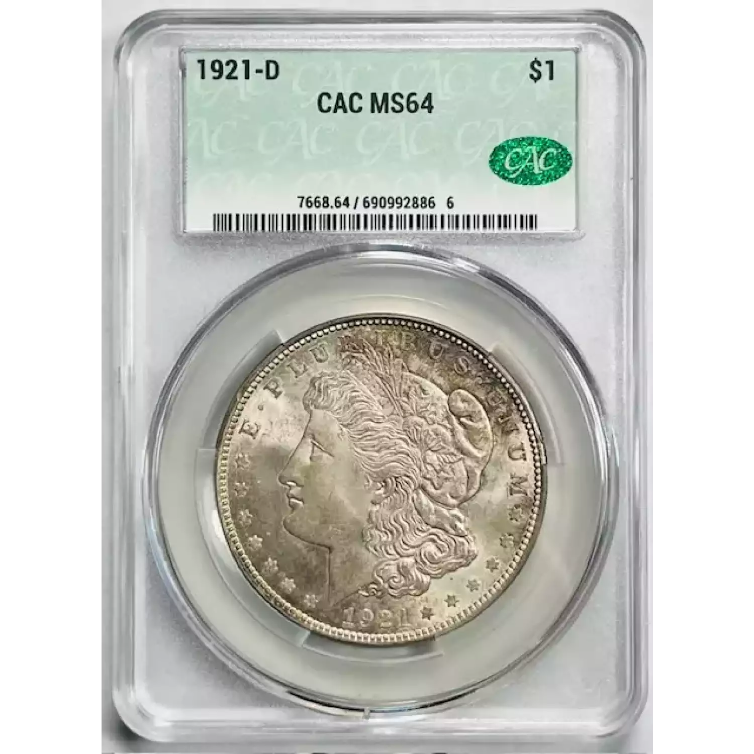1921-D Morgan Silver Dollar CACG MS 64 CAC