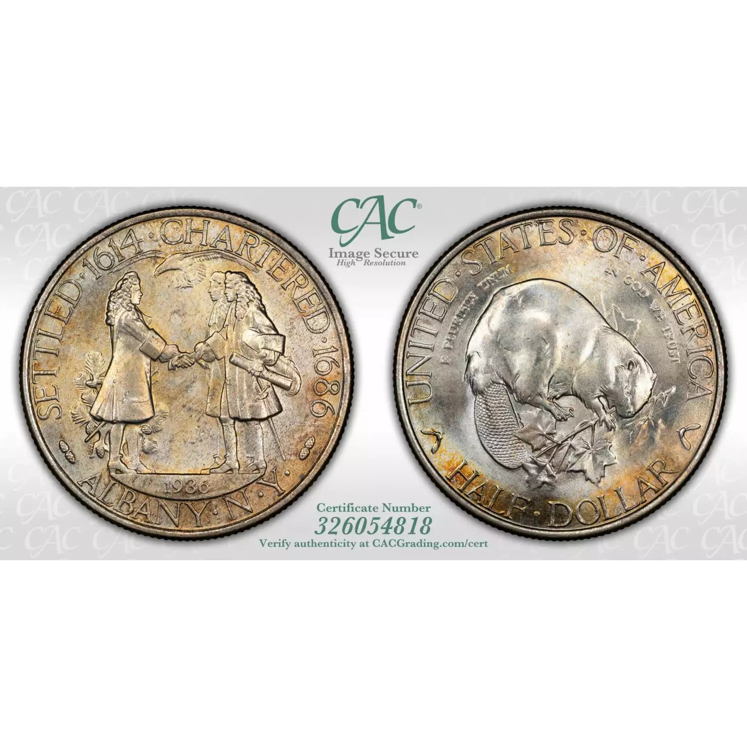 1936 Classic Commemorative Albany, New York, Charter CACG MS 66 CAC
