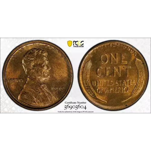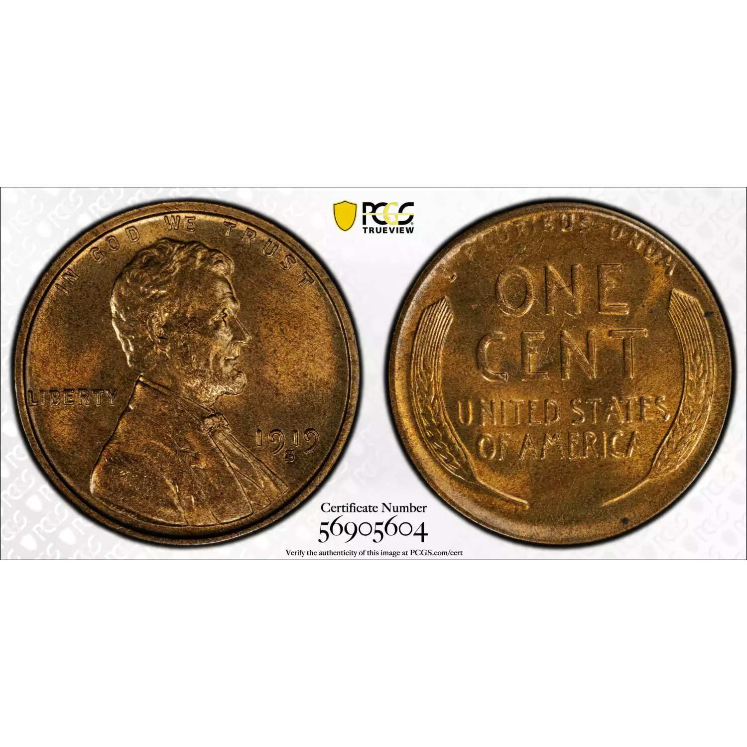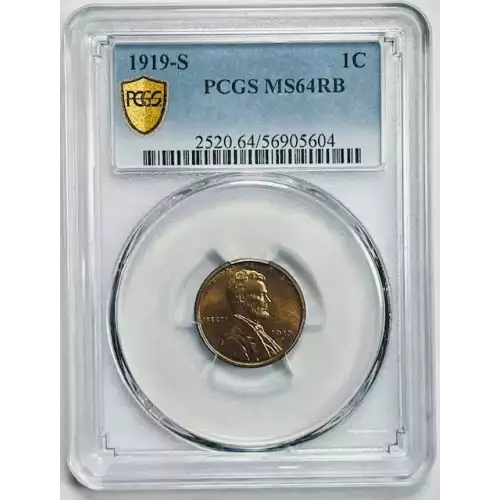 1919-S Small Cents Lincoln, Wheat Ears Reverse PCGS MS-64 RB