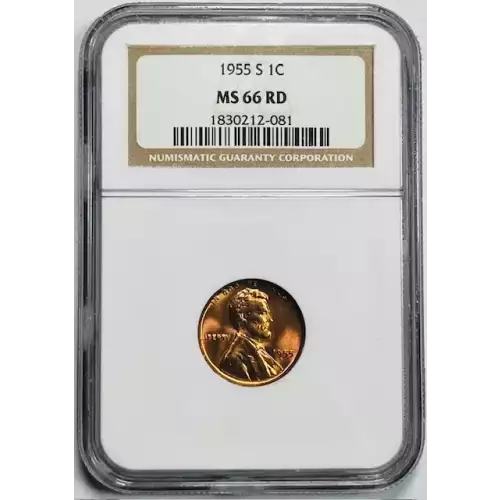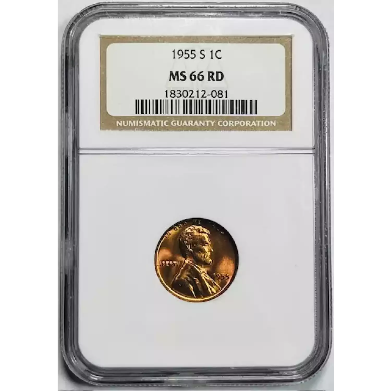 1955-S Small Cents Lincoln, Wheat Ears Reverse NGC MS-66 RD