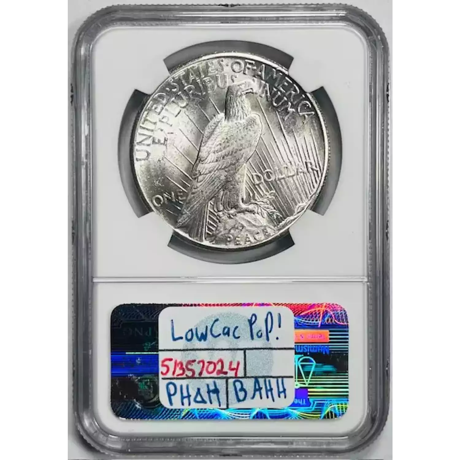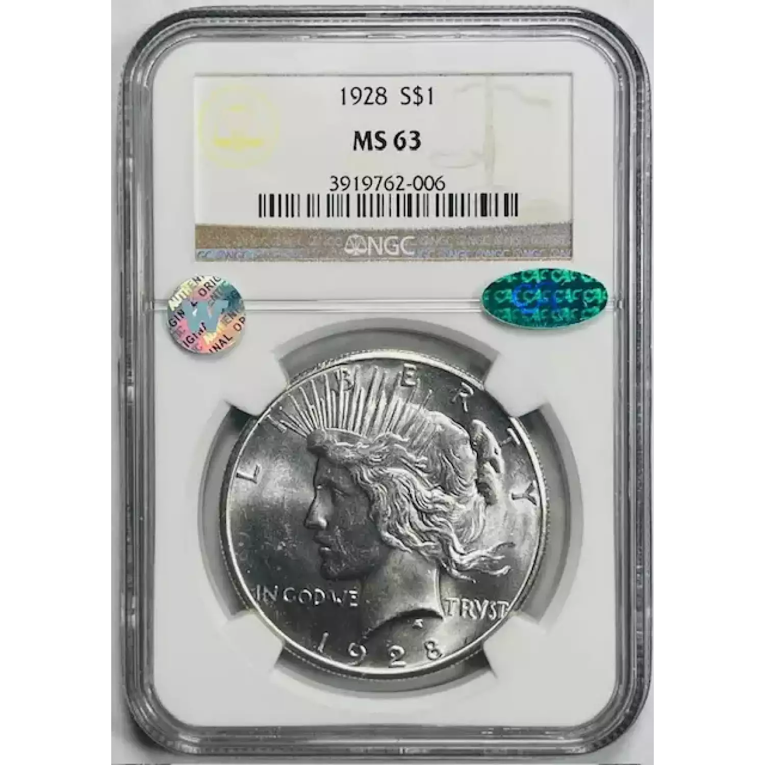 1928 Peace Dollar NGC MS-63 Low CAC Pop CAC, Sight White