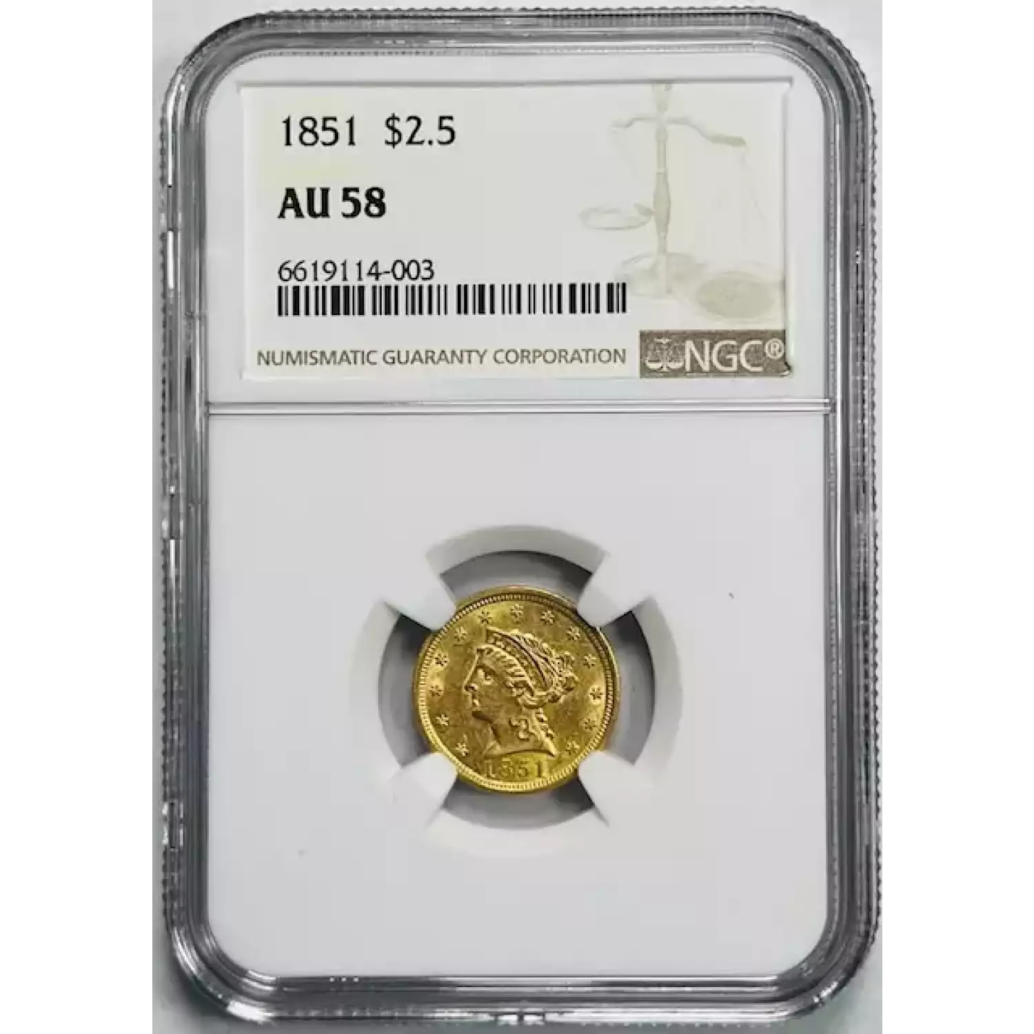 1851 $2.50 Gold Liberty Head Quarter Eagle NGC AU-58