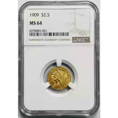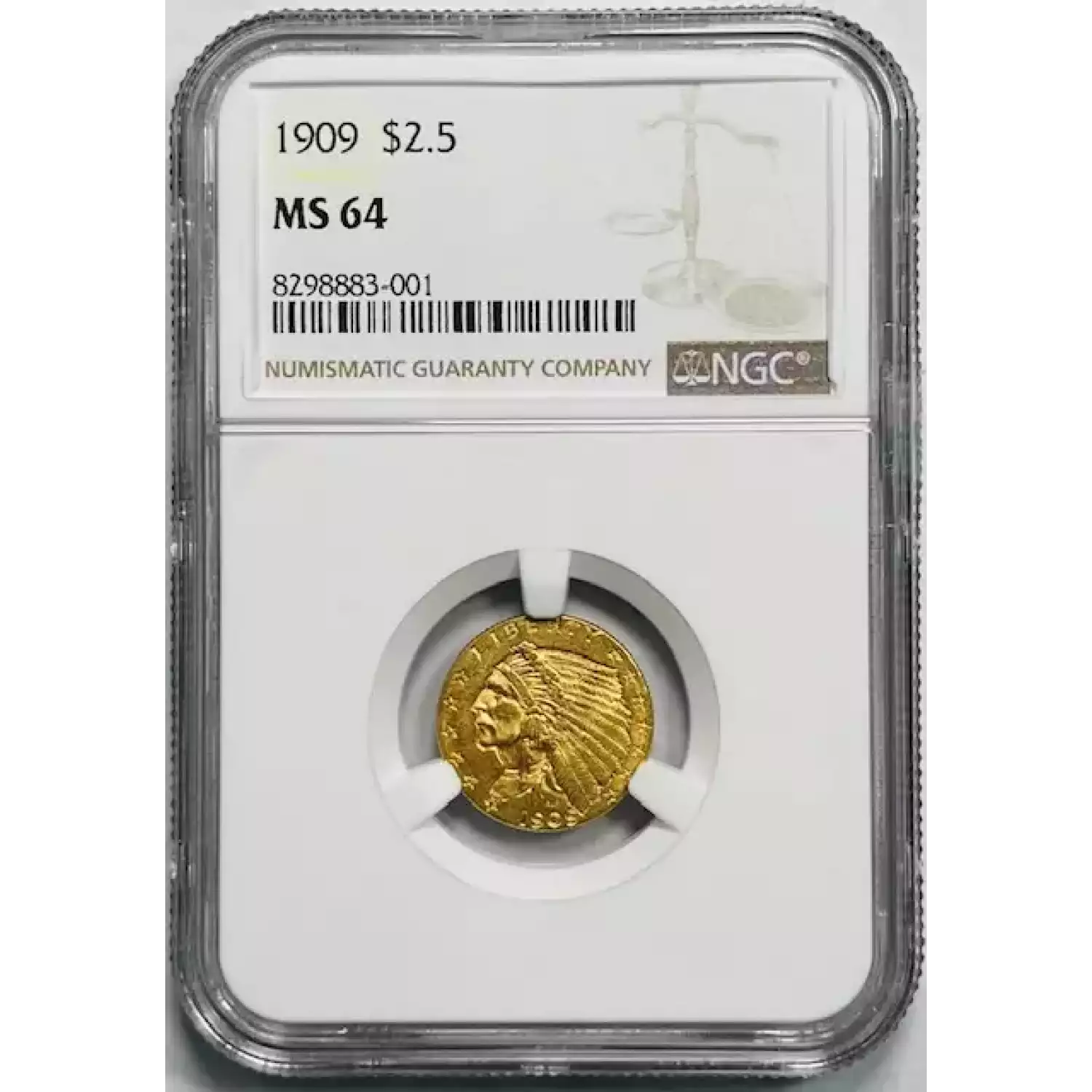 1909 Gold Quarter Eagles $2 1/2 Indian Head NGC MS-64 Nice Luster!