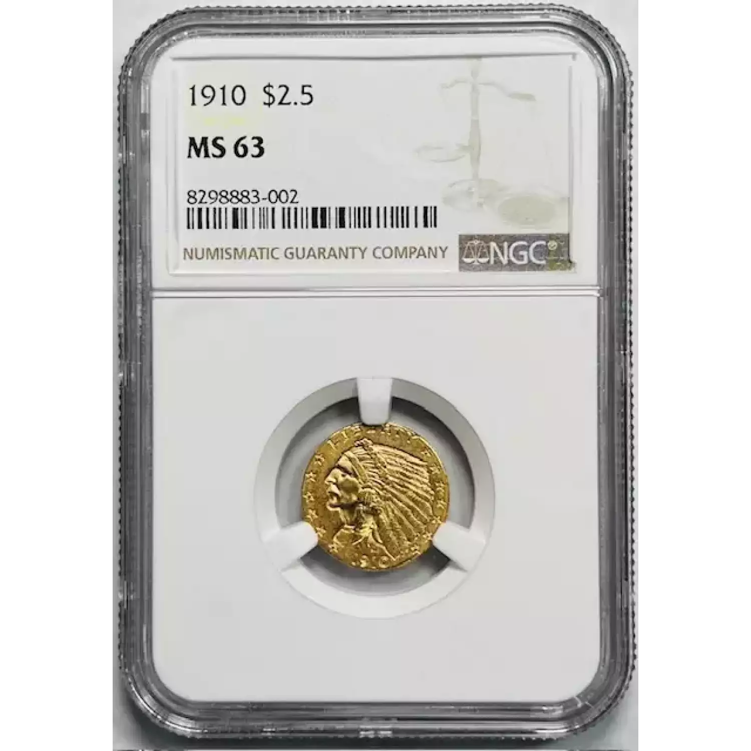 1910 Gold Quarter Eagles $2 1/2 Indian Head NGC MS-63