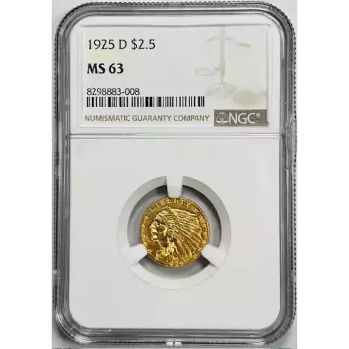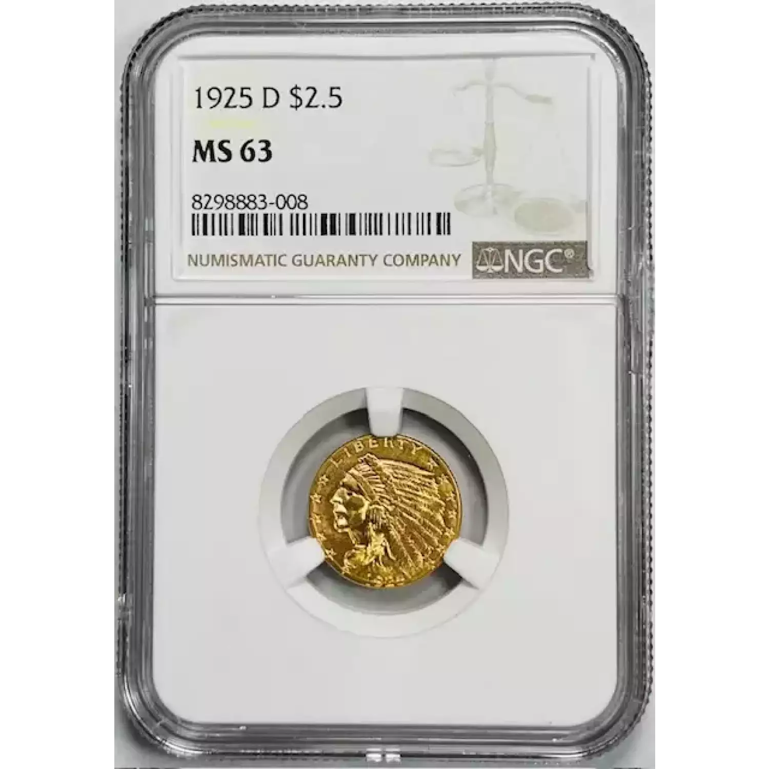 1925-D Gold Quarter Eagles $2 1/2 Indian Head NGC MS-63