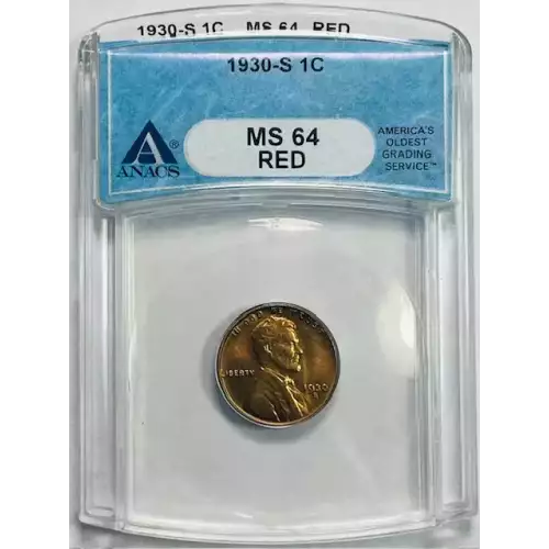 1930-S Small Cents Lincoln, Wheat Ears Reverse ANACS MS-64 RD
