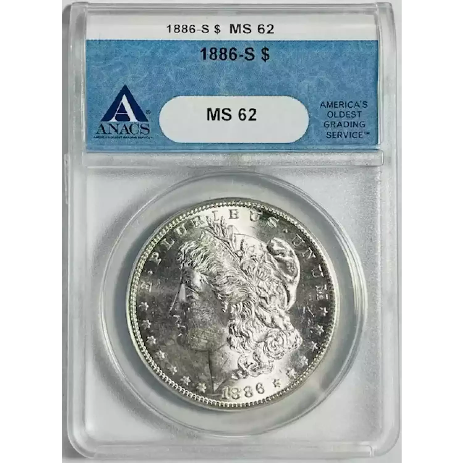 1886-S Morgan Silver Dollar ANACS MS-62 White!