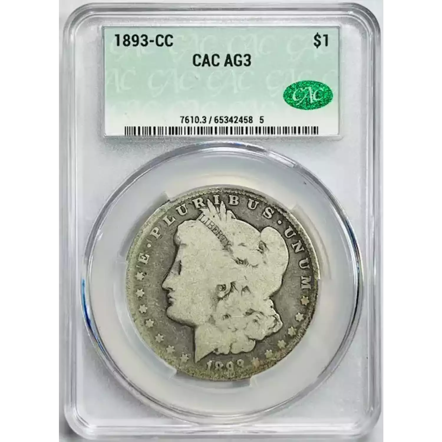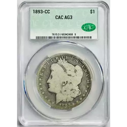 1893-CC Morgan Silver Dollar CACG AG 03 CAC