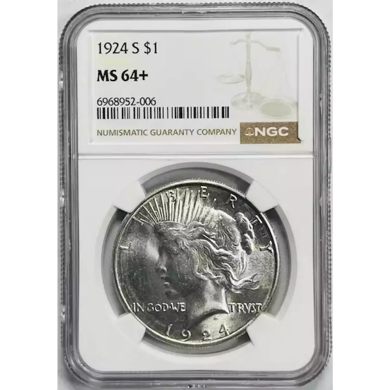1924-S Peace Dollar NGC MS-64+ White! WOW!