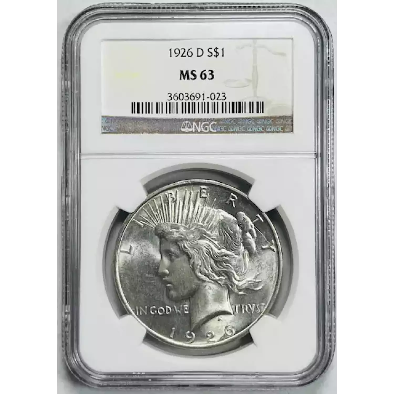 1926-D Peace Dollar NGC MS-63