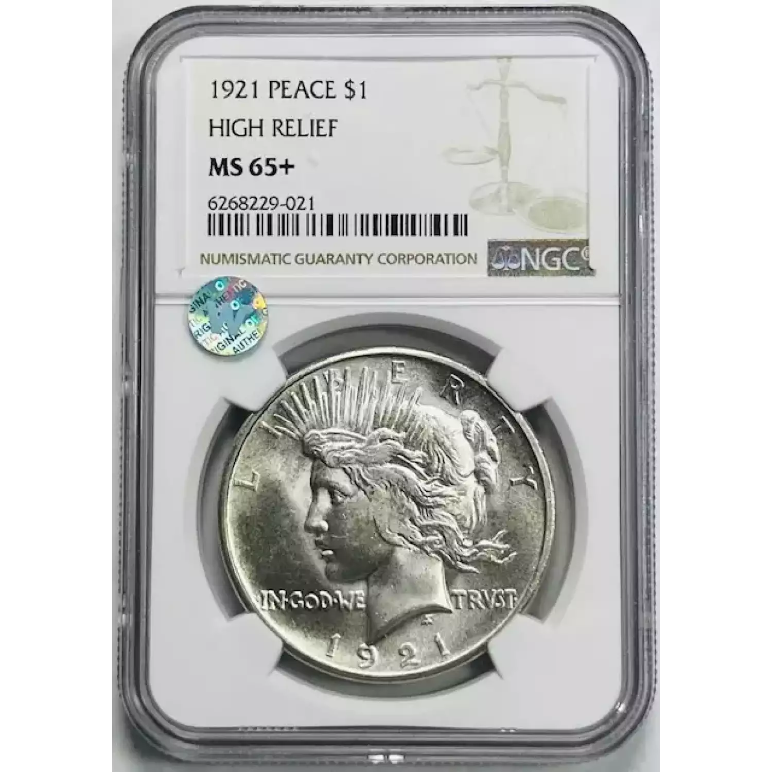 1921 Peace Dollar NGC MS-65+ HIGH RELIEF A WOW Coin! Sight White