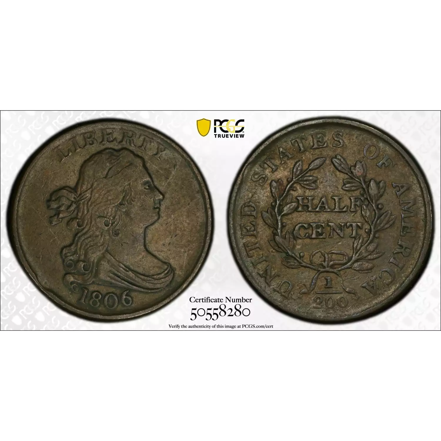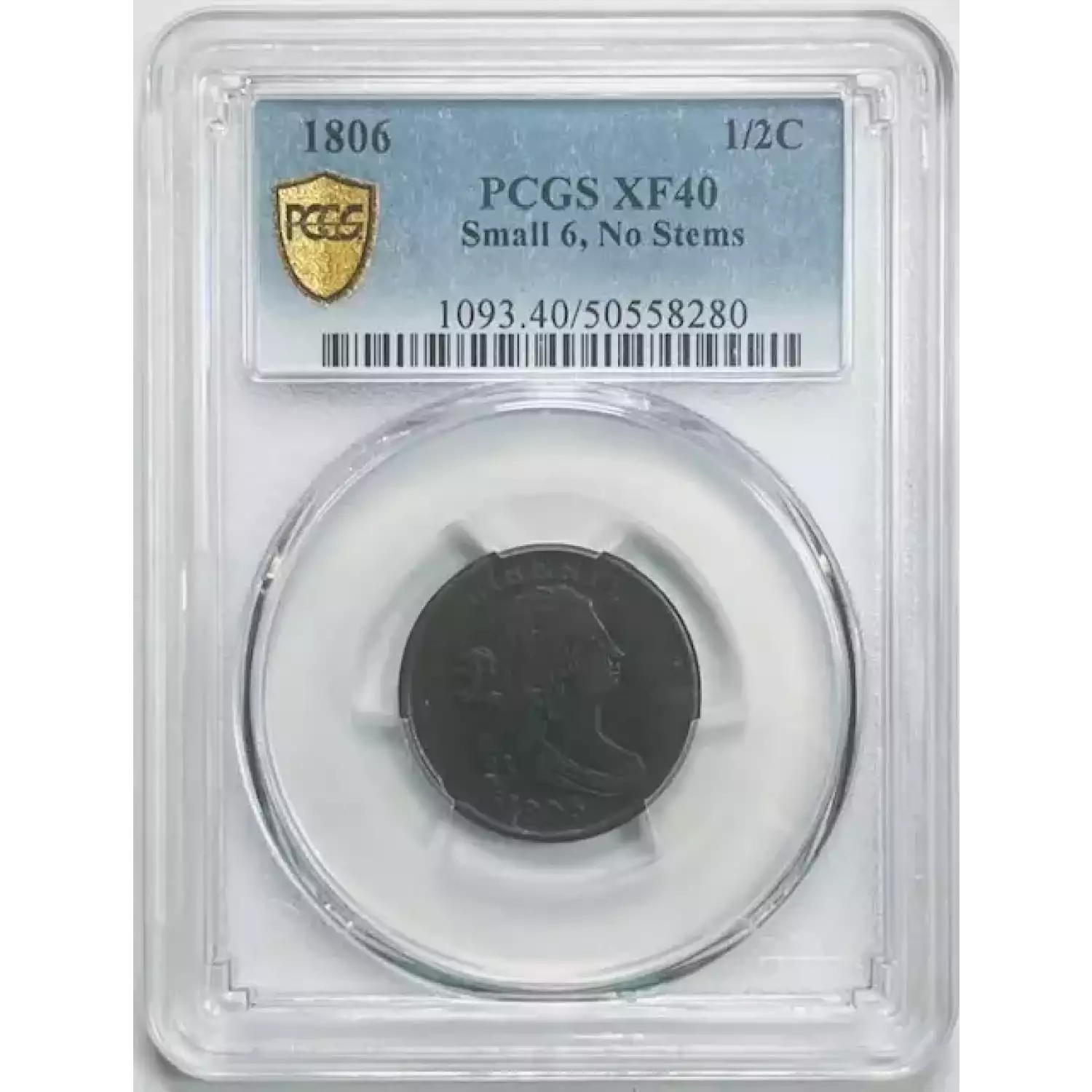 1806 Half Cents Draped Bust 1800 - 08 Copper PCGS XF-40 BN Small 6, No Stems