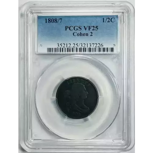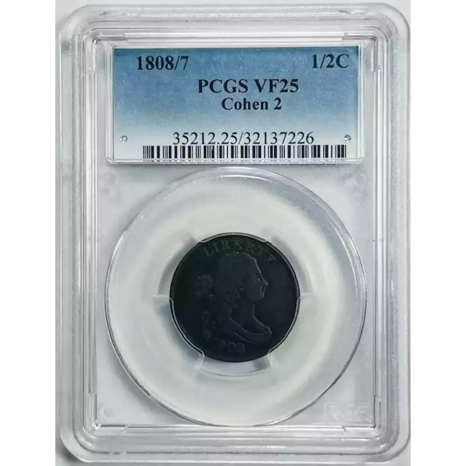 1808/7 Half Cents Draped Bust 1800 - 08 Copper PCGS VF-25 BN Cohen 2