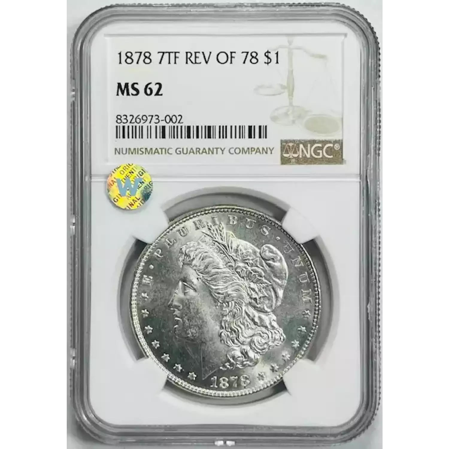 1878 Morgan Silver Dollar NGC MS-62 7TF Rev of 78 Sight White