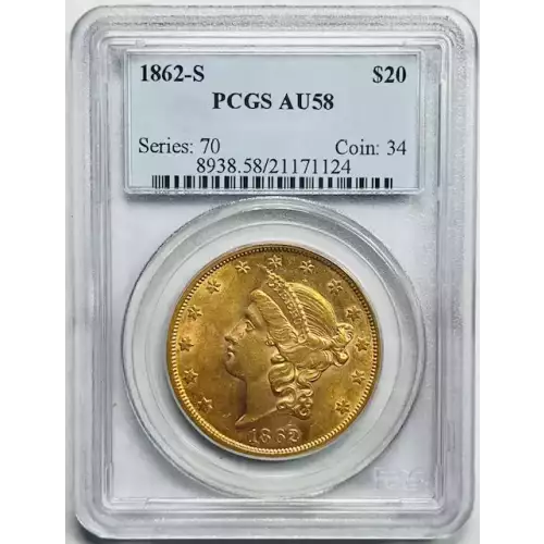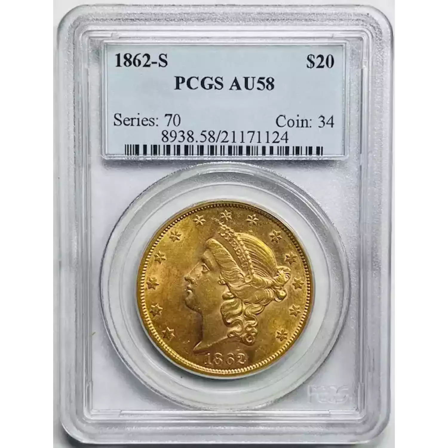 1862-S Double Eagles Liberty Head PCGS AU-58