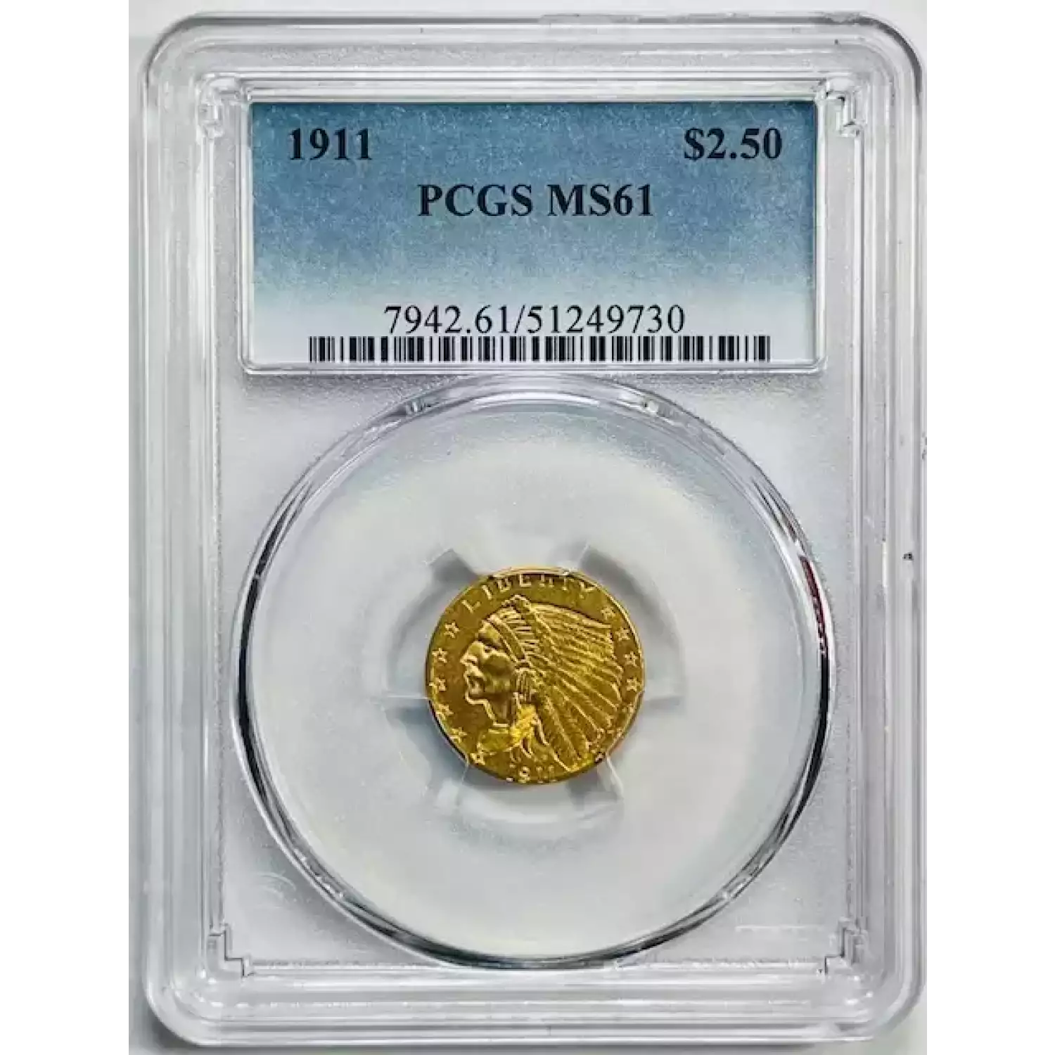 1911 Gold Quarter Eagles $2 1/2 Indian Head PCGS MS-61