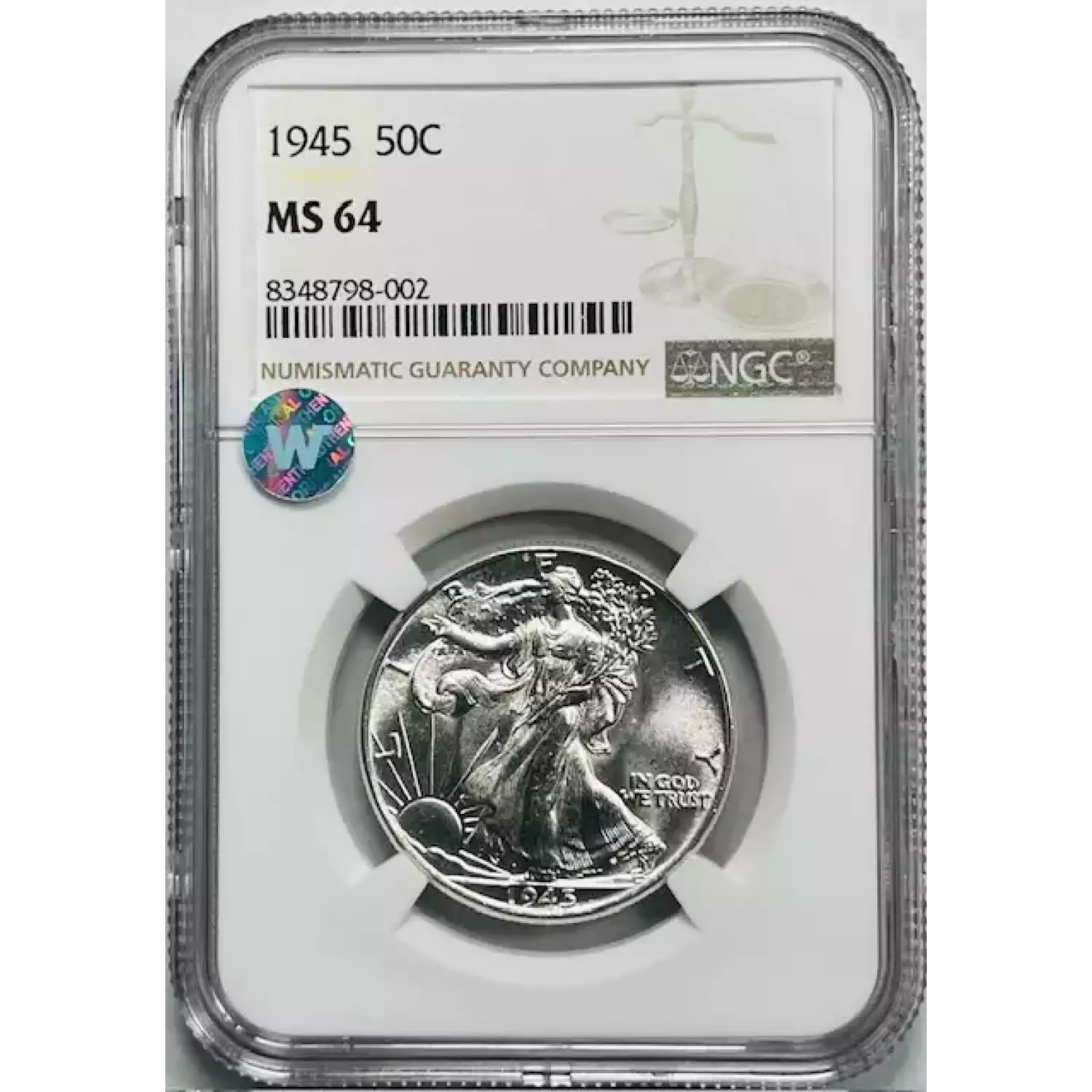 1945 Walking Liberty Half Dollar NGC MS-64 Sight White