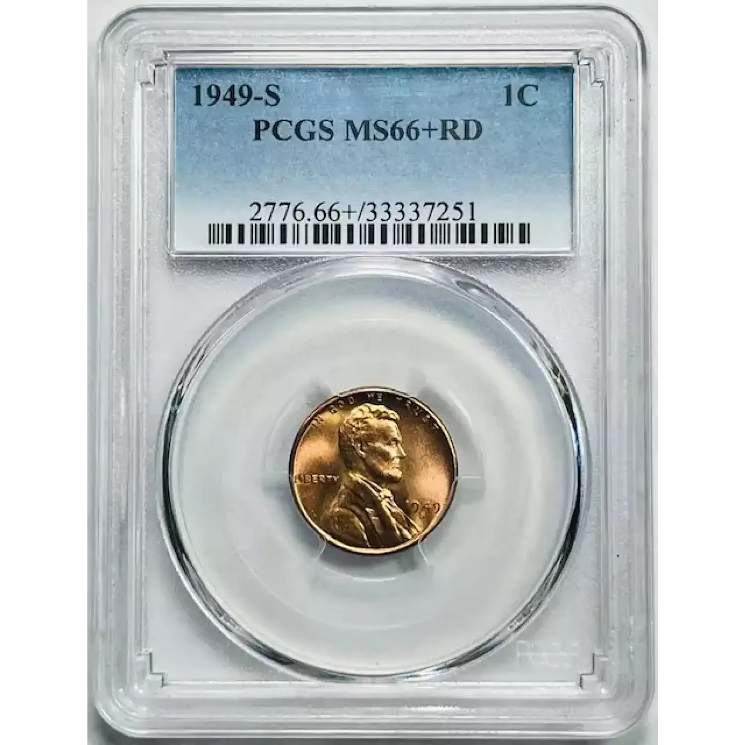 1949-S Small Cents Lincoln, Wheat Ears Reverse PCGS MS-66+ RD