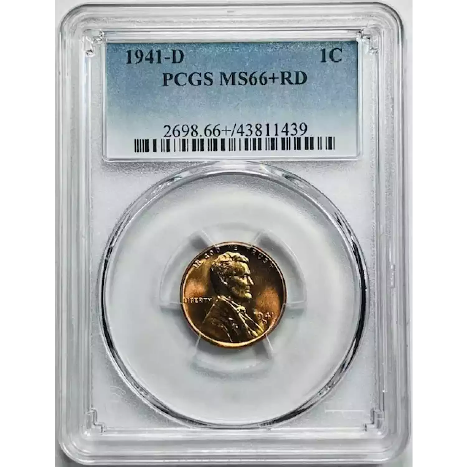 1941-D Small Cents Lincoln, Wheat Ears Reverse PCGS MS-66+ RD