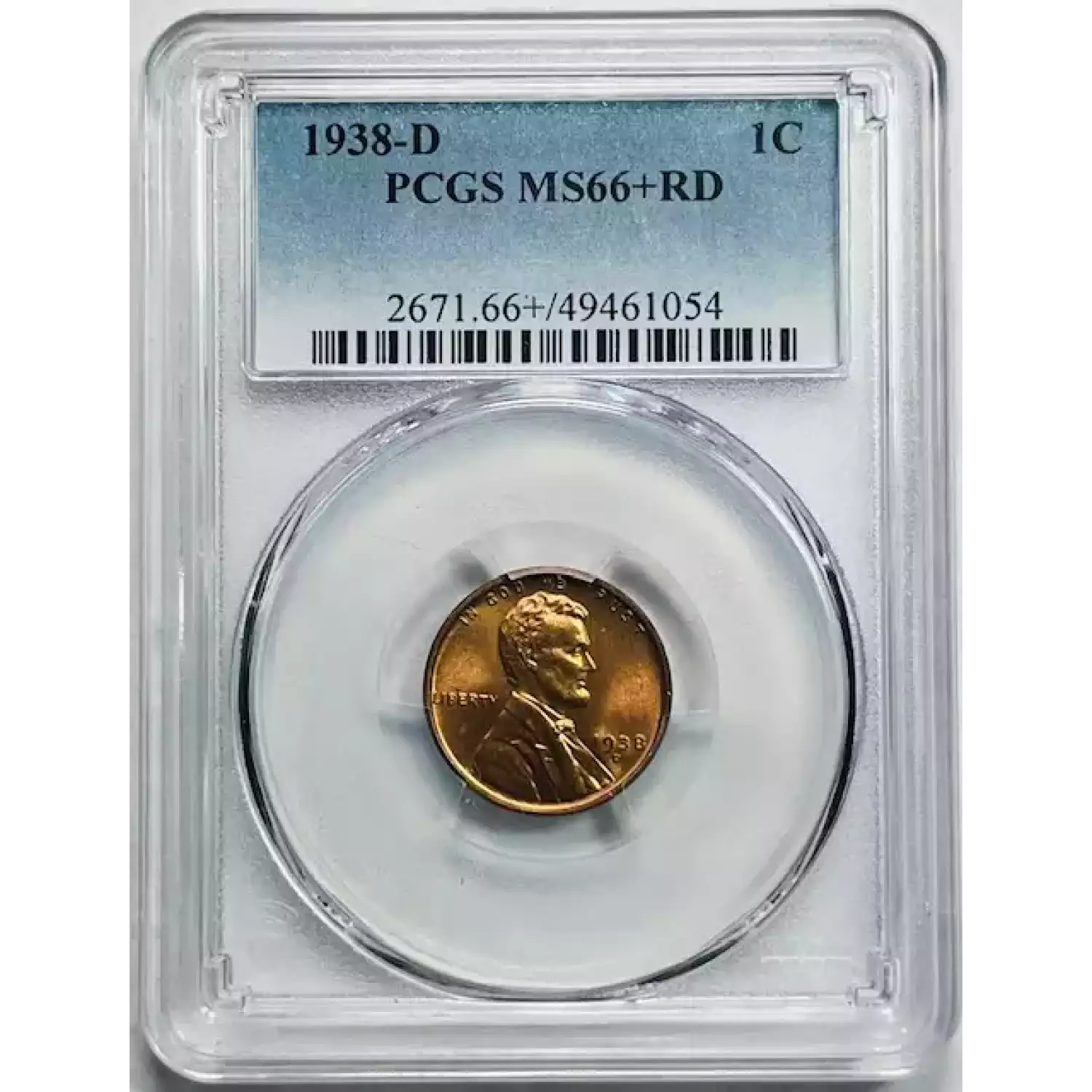 1938-D Small Cents Lincoln, Wheat Ears Reverse PCGS MS-66+ RD