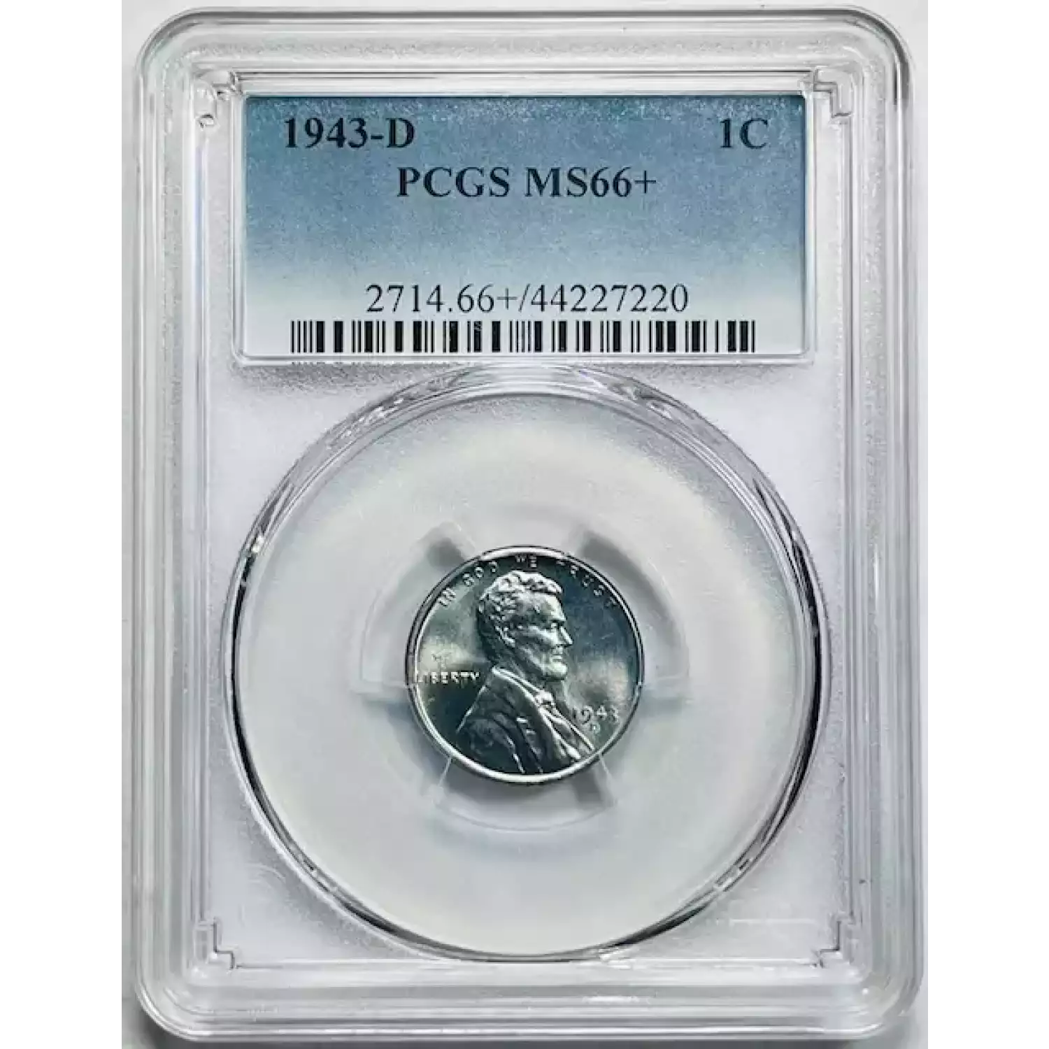 1943-D Small Cents Lincoln, Wheat Ears Reverse PCGS MS-66+