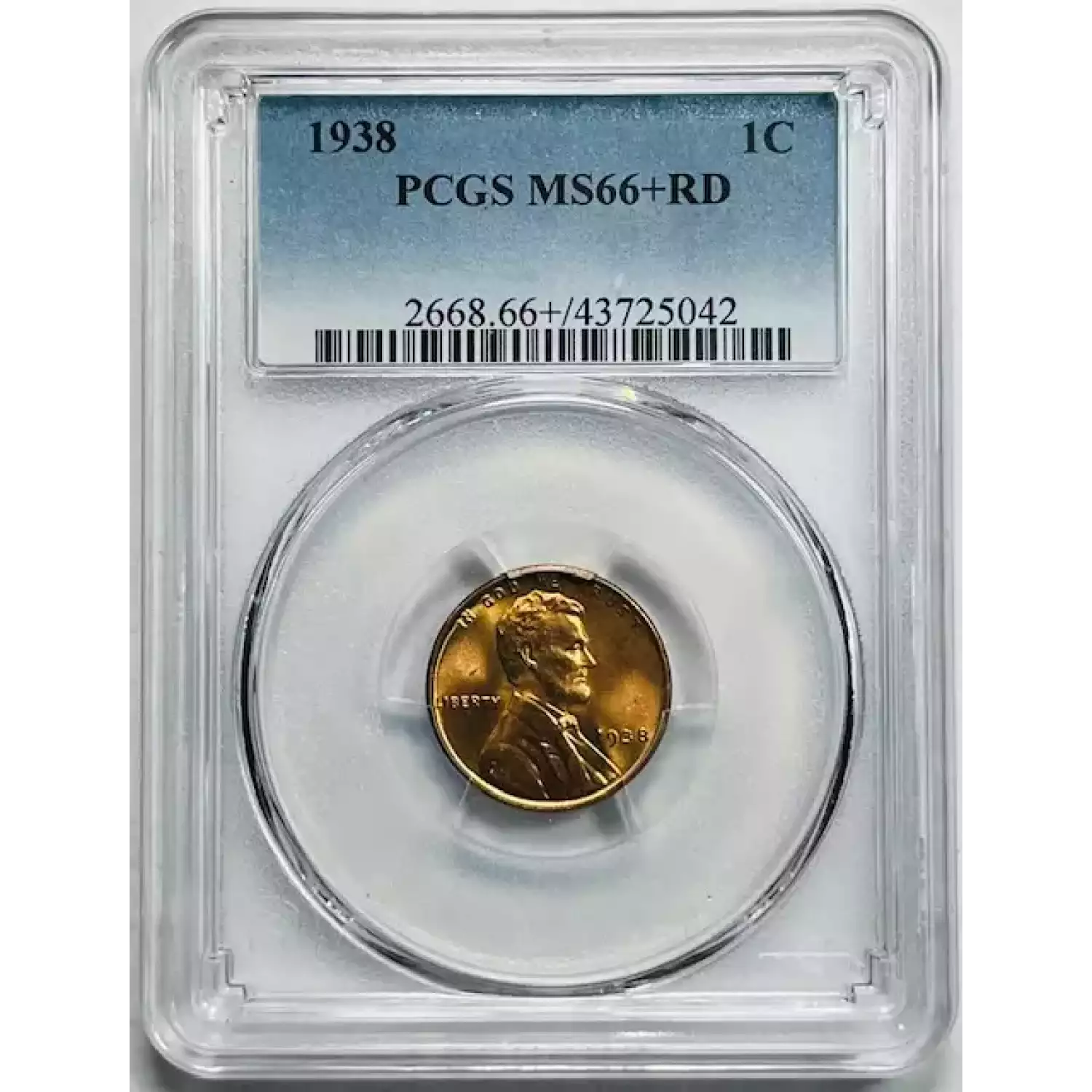 1938 Small Cents Lincoln, Wheat Ears Reverse PCGS MS-66+ RD