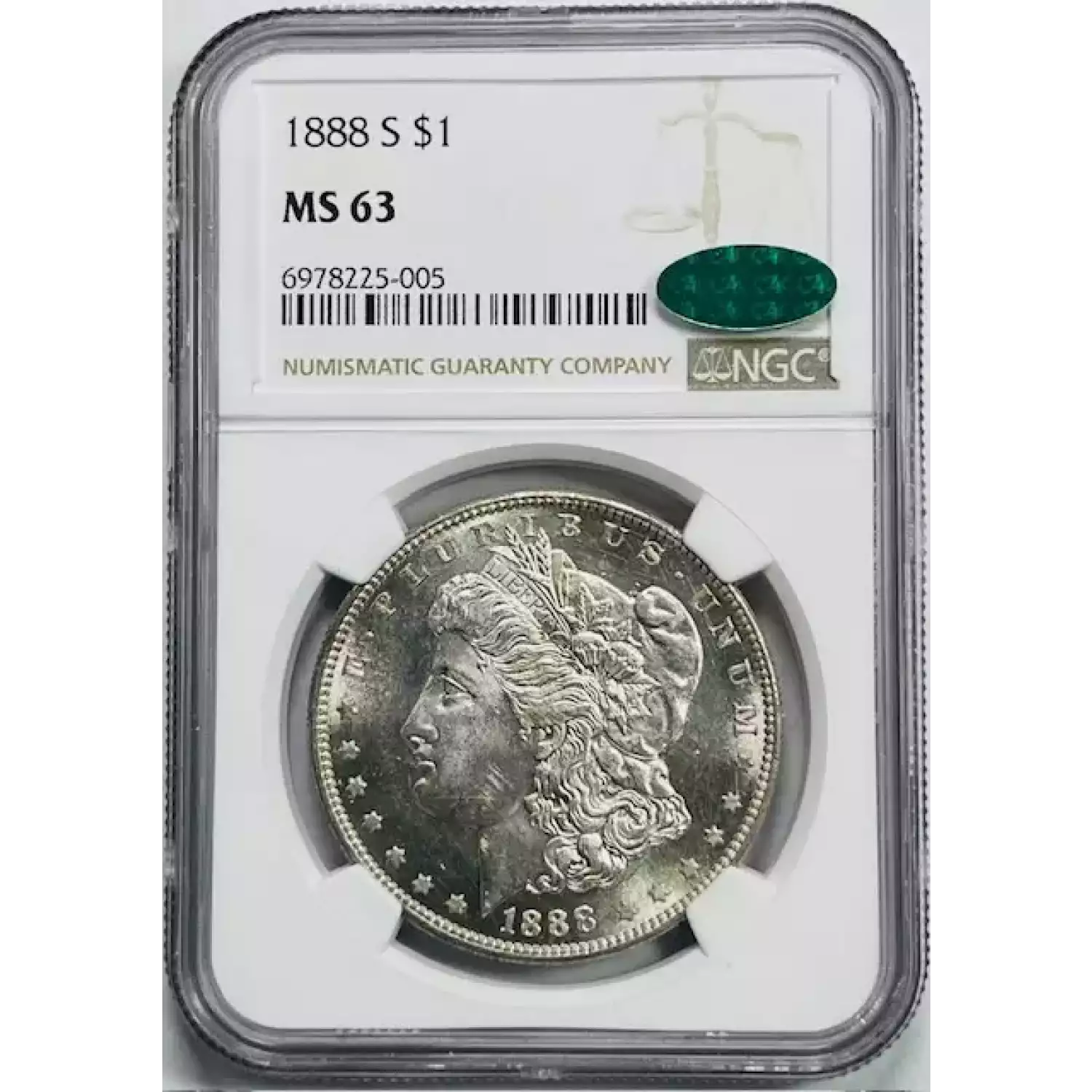 1888-S Morgan Silver Dollar NGC MS-63 Low CAC Pop! CAC